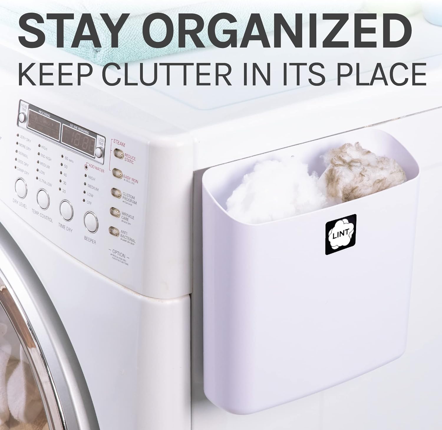- Stay organized; keep your laundry room spic and span with the JS Jackson Supplies magnetic lint bin; banish lint, used dryer sheets, and other clutter while saving floor space