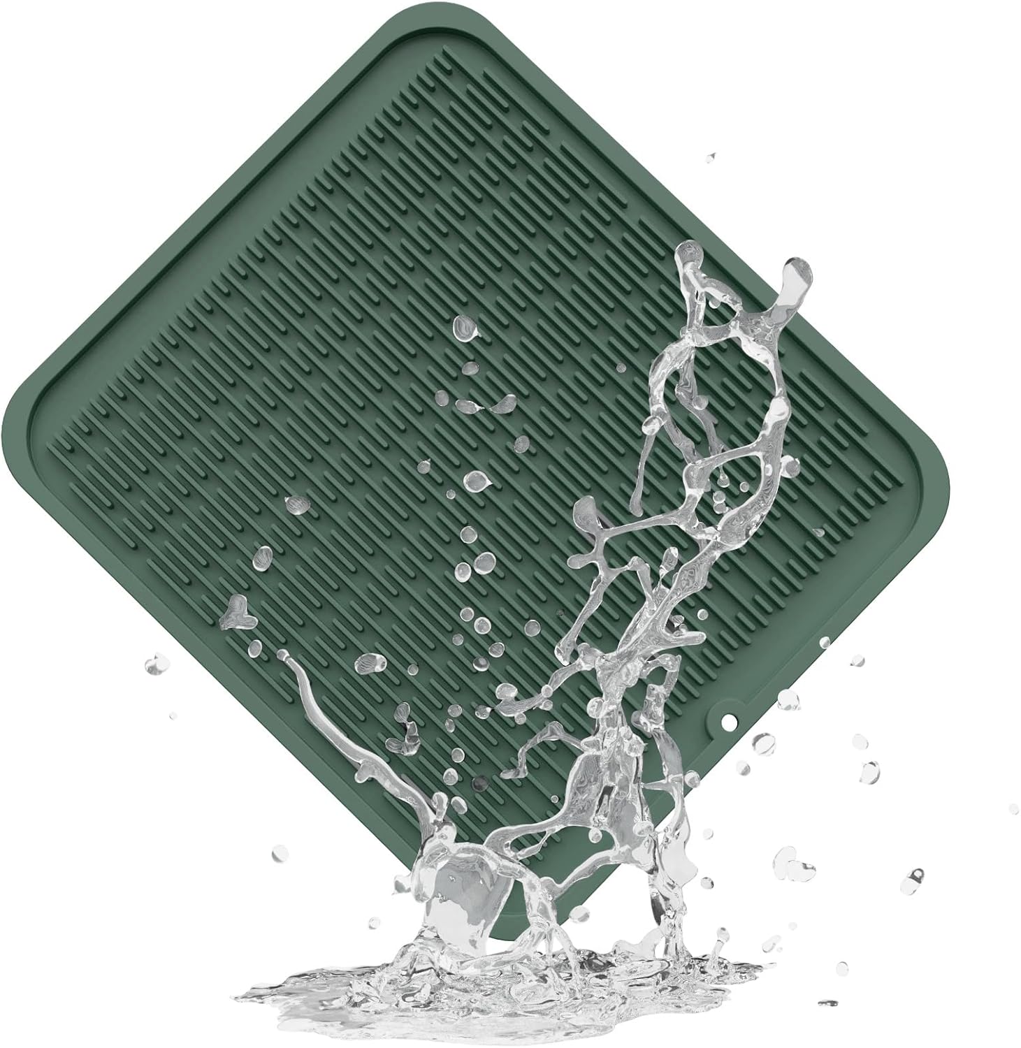 ZLR Silicone Dish Drying Mat for Kitchen Counter, Eco-Friendly Fast Dry Dish Mat, Easy Clean Multi Usage Drying Matt, Heat Resistant Trivet, 16" x 18" XL, Dark Green