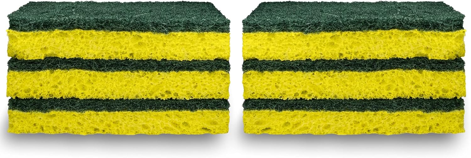 Amazon Basics Cleaning Sponges, Multipurpose, Heavy Duty Scrub Sponges, Yellow/Green, 6-Pack