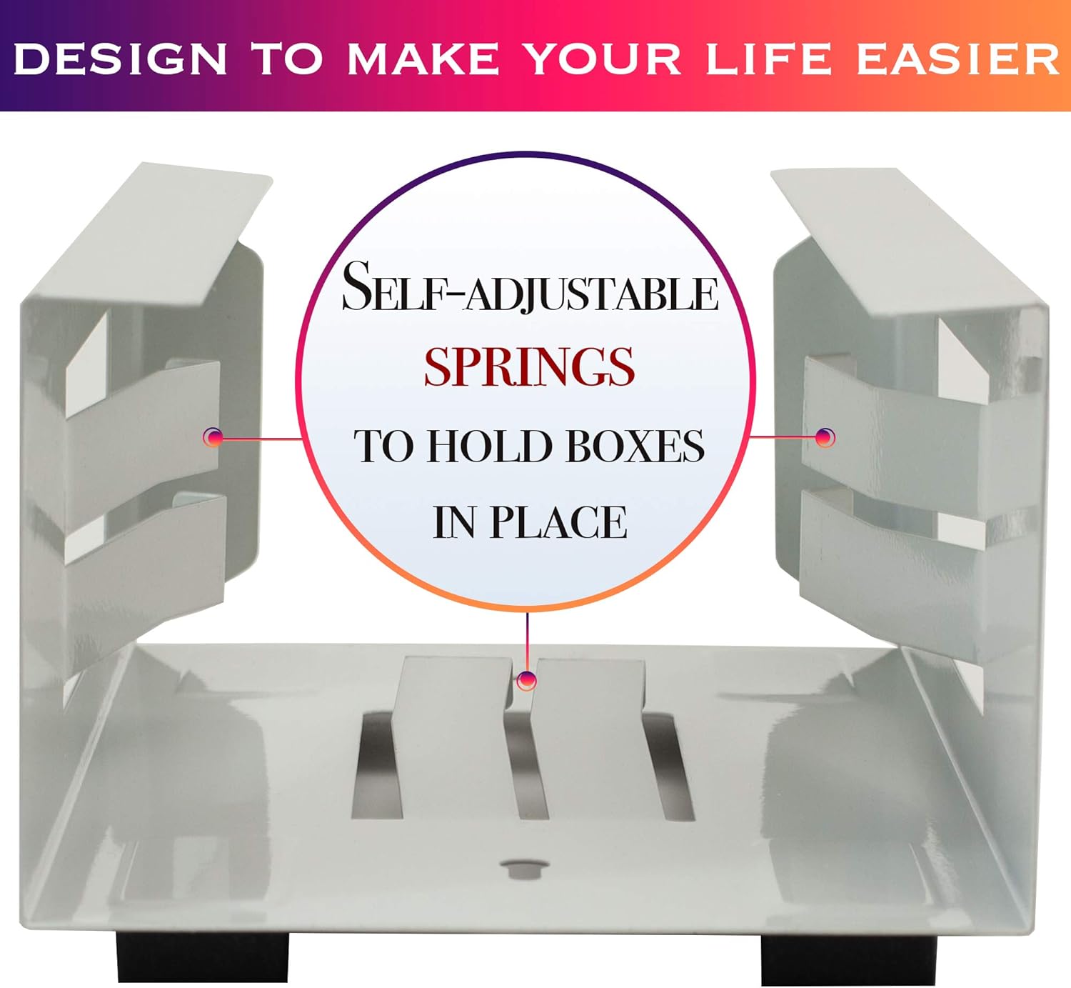 - Self-Adjusting Springs: Our gloves holder features self-adjusting springs that allow it to hold different box sizes for your convenience. A perfect disposable glove holder wall mount solution.