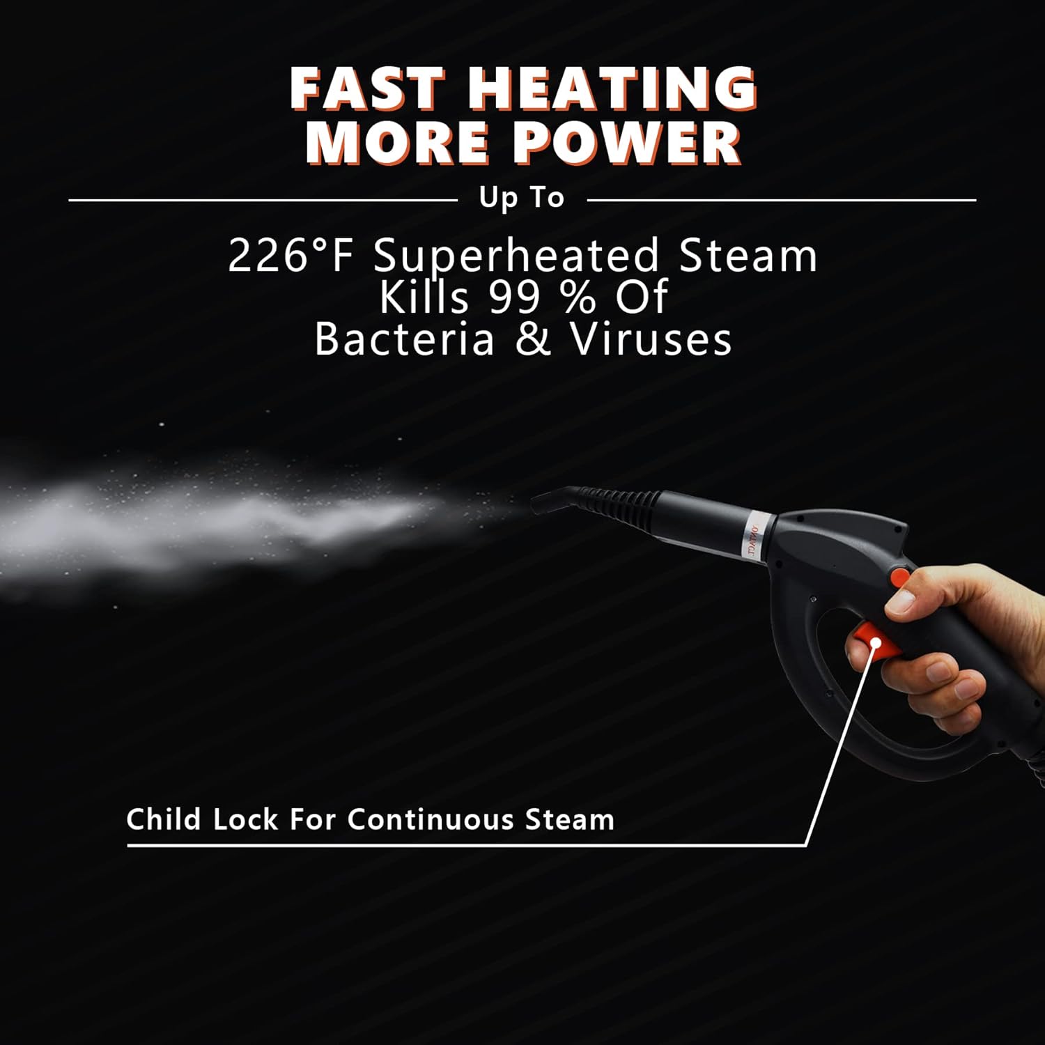 - 【Efficient Deep Cleaning】Steam Cleaner with high temperature steam up to 226°F and steam working pressure up to 4 bar, so it can easily removes all kind of dirt in various surface and making the room cleaner. Deeply clean assure Child & Pet Safe. (Maximum power 2000W, rated power 1600W)