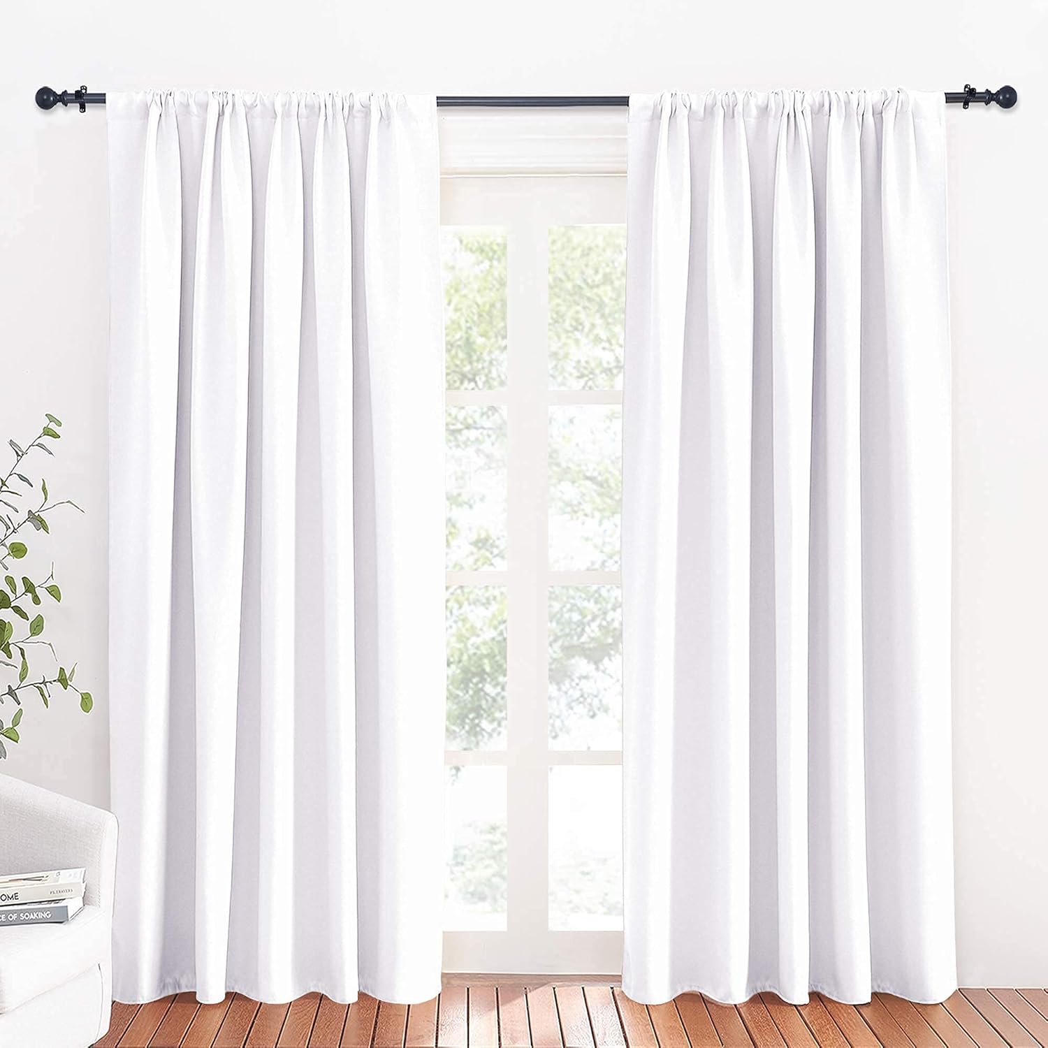 RYB HOME Large Curtains for Living Room 84 inches Length, Room Darkening Privacy Room Divider Curtains for Doorway Closet Basement Patio Door Bay Window, W 70 x L 84, Pure White, 2 Panels