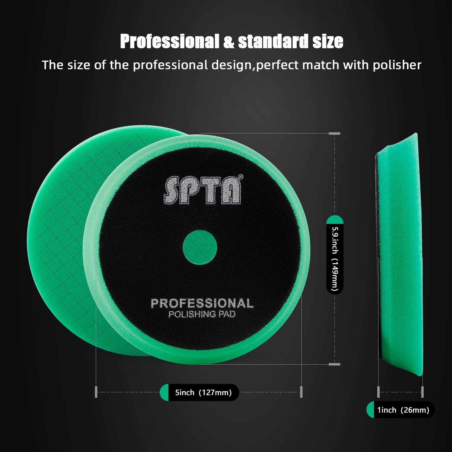 SPTA Polishing Pads, 5Pc 5 Inch 125mm Orbital Buffer Polisher Pads and 1Pc Microfiber Buffing Pads, Foam Polish Pad for Compounding, Polishing and Waxing, for 5''/125mm Backing Plate Car Polisher