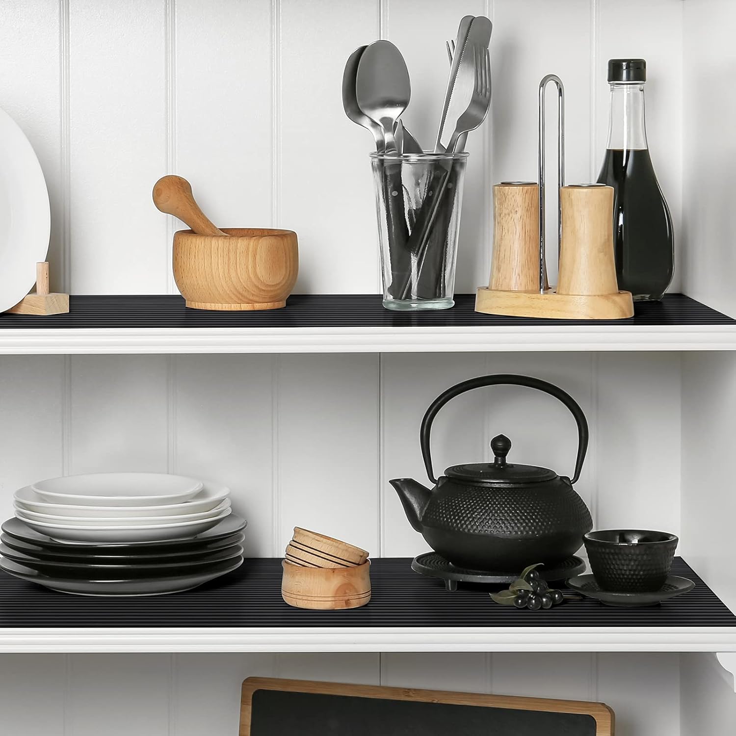 Shelf Liners for Kitchen Cabinets Non Adhesive Drawer Liner EVA Material Cupboard Mat Refrigerator Mats Washable Fridge Liner for Cabinet, Storage and Desks 17.3 x 236.2 Inches Black