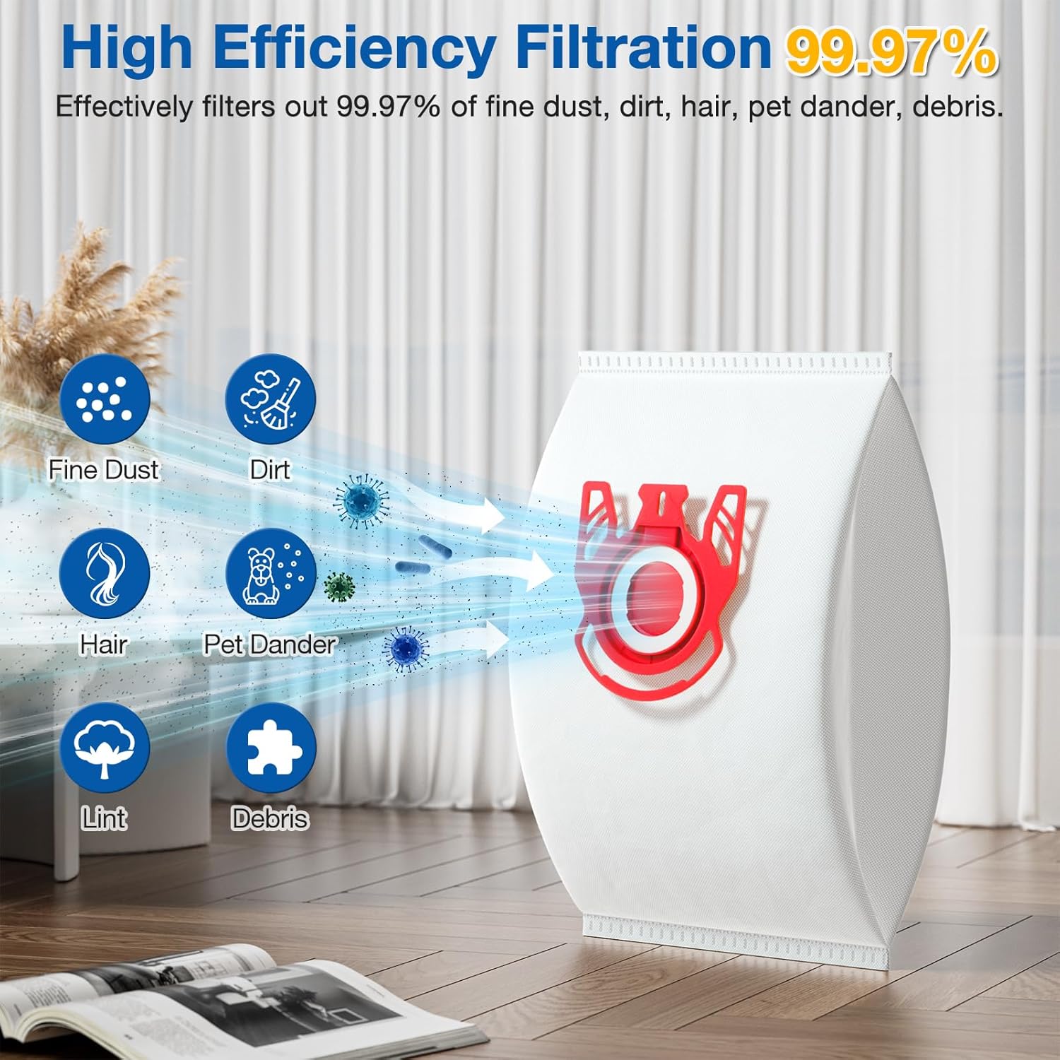 - Fine Filtration: These fjm vacuum bags for miele feature a 5 layer micro plus filtration system, capable of capturing particles, down to 0.3 microns. Effectively remove microscopic dust, pet dander and pollen.