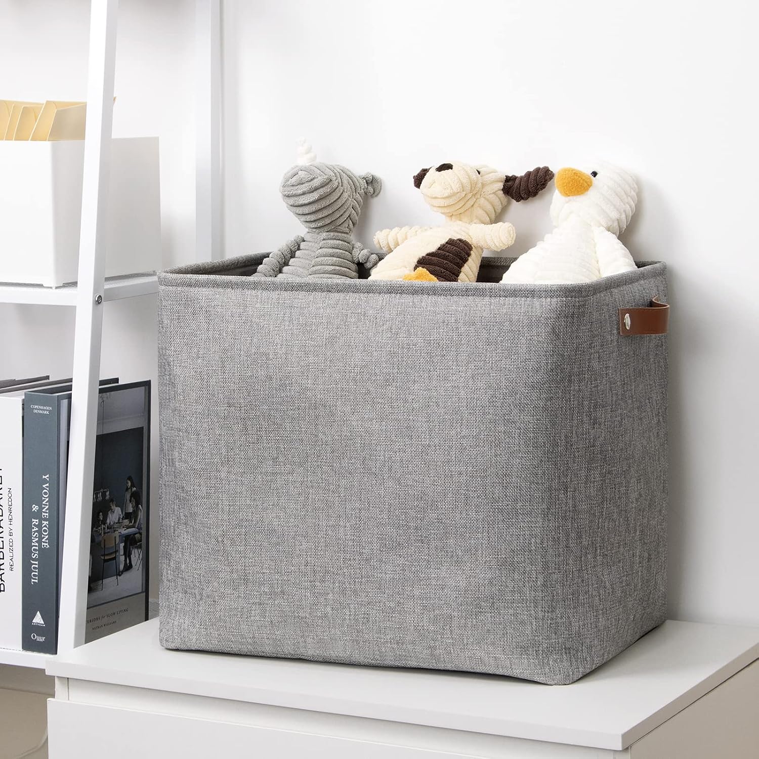 DULLEMELO Large Collapsible Storage Basket/Bin with Sturdy Leather Handles, Fabric Organizer Bin for Storage Clothes, Toys, Books, Office, Bedroom, Closet, Nursery & Laundry (Gray)