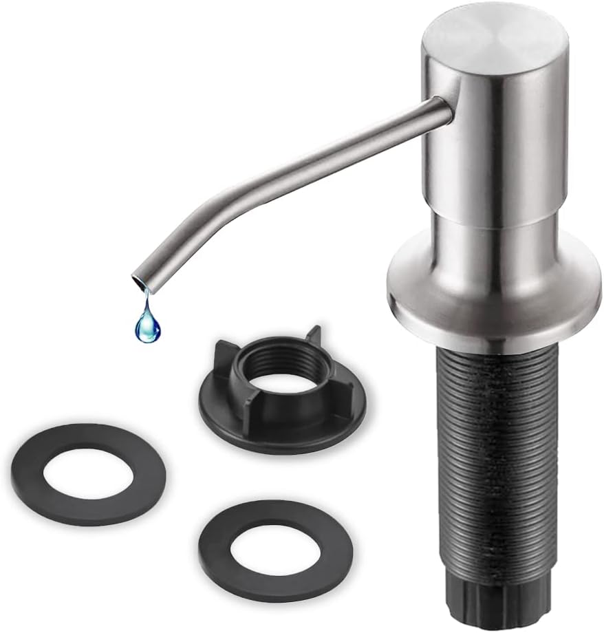 - COMMERCIAL GRADE MATERIAL: Our kitchen sink soap dispenser is made of commercial grade 304 stainless steel on the outside and durable PE plastic on the inside. The brushed nickel finish has excellent corrosion and rust resistance.