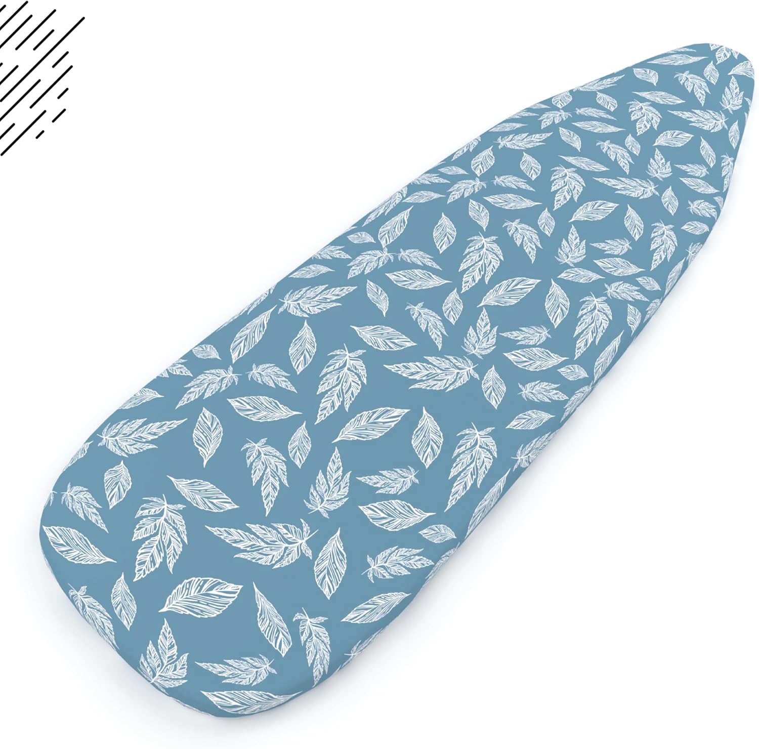Encasa XO Ironing Board Cover and Pad 42"x14" - Thick 3mm Felt Padding, Drawstring Tightening & Lock, Easy Fit, Scorch & Stain Resistant, Fits Medium Ironing Board - Big Leaves Blue