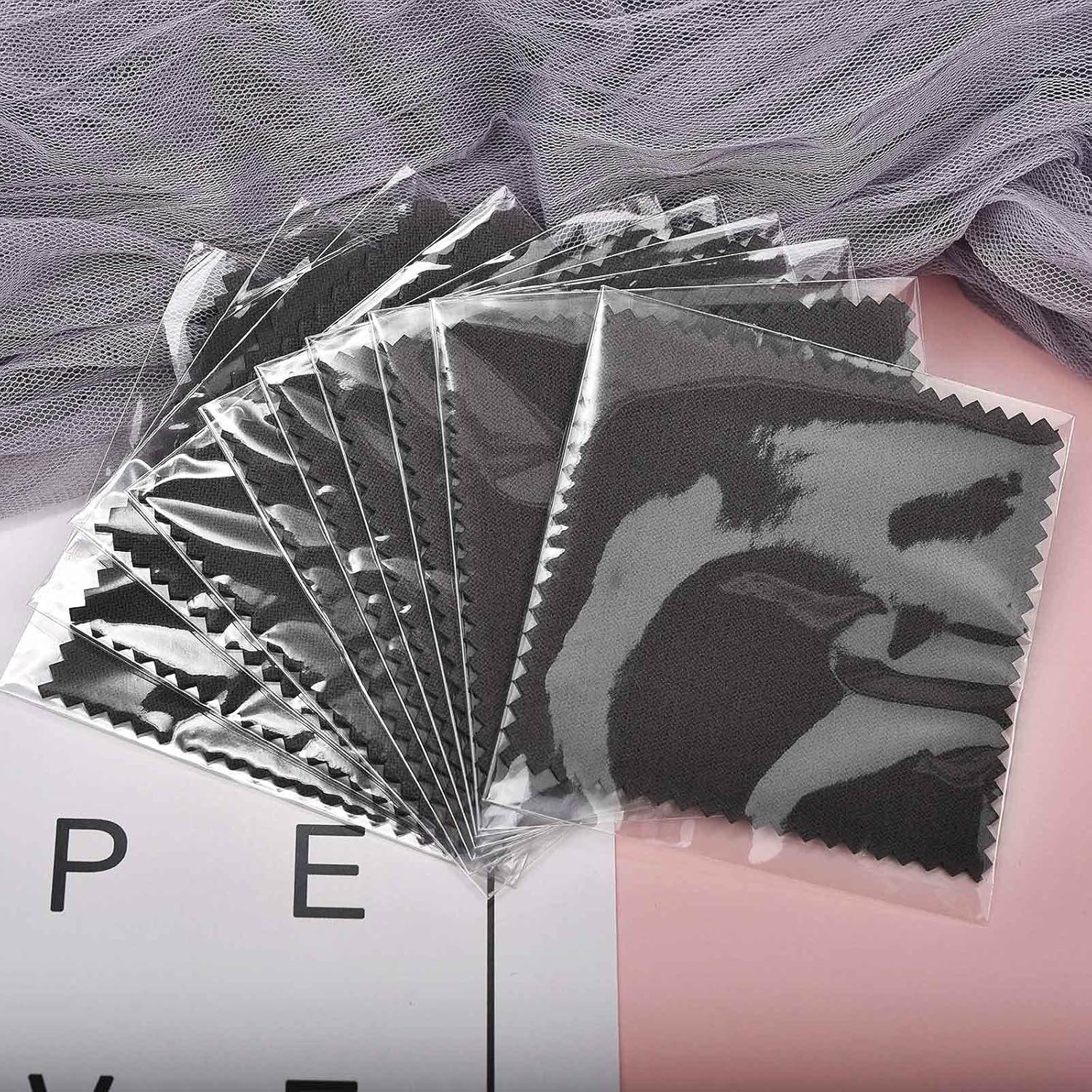 - Material and Color: Made of suede fabric. No color fading, easily removes scratches and tarnish on silver, gold, and platinum. Color is dark gray