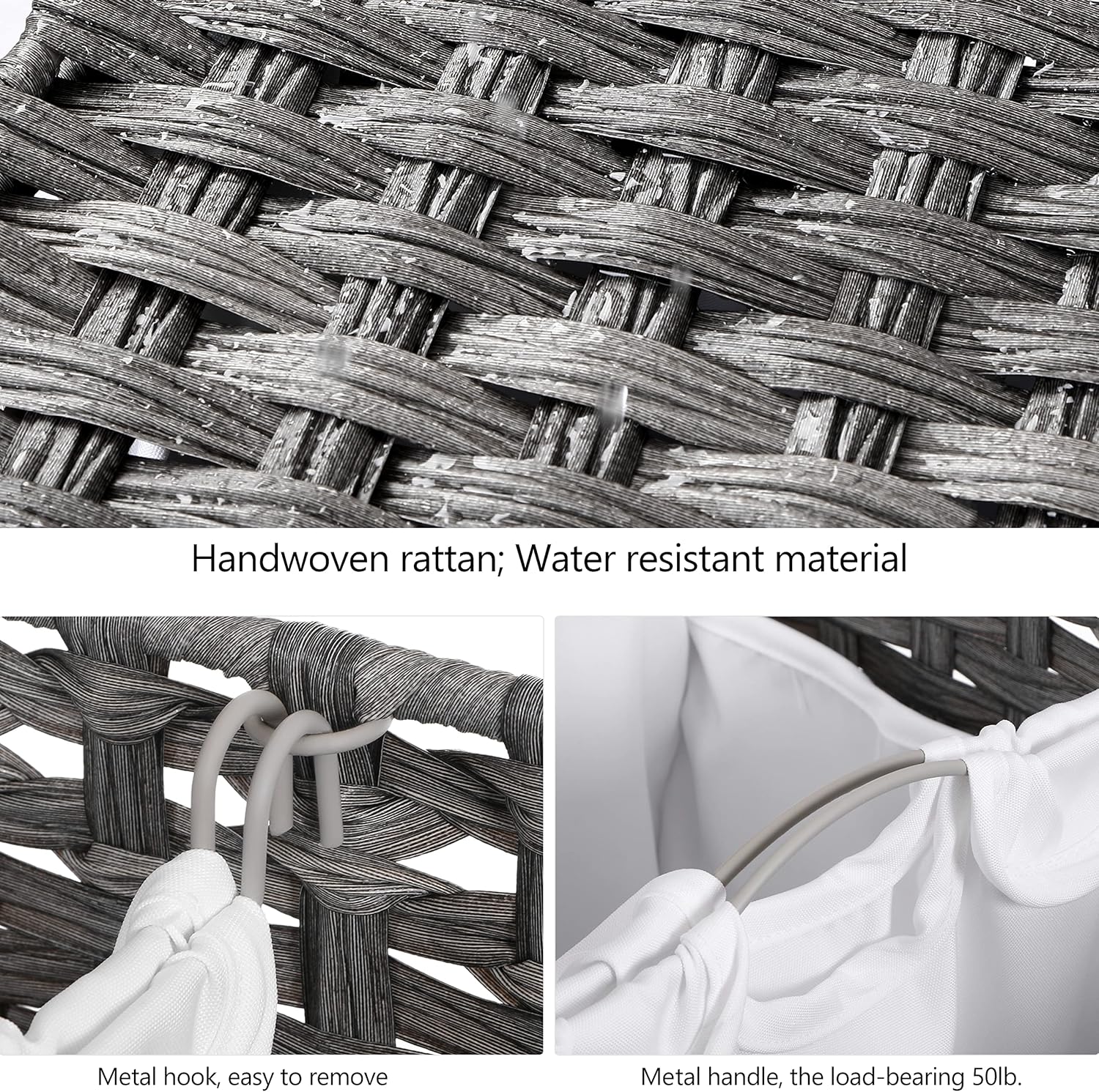Laundry Hamper with 3 Removable Liner Bags; 132L Handwoven Rattan Laundry Basket with Lid & Heightened Feet; Clothes Hamper with Side Handles; Laundry Sorter with 3 Separate Sections (Gray)