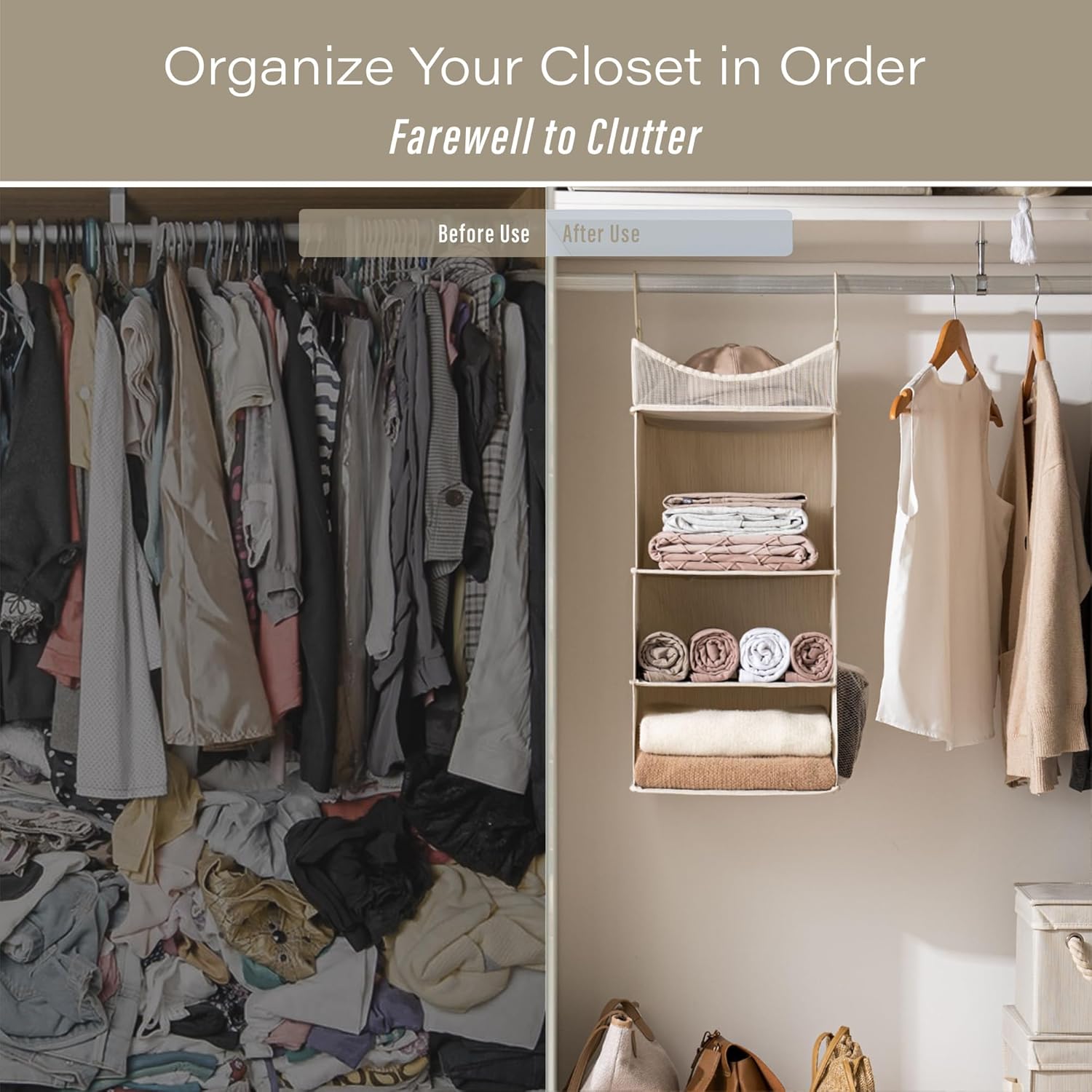 - Hanging closet shelf for versatile storage of sweaters, knitwear, handbags, scarves, shirts, pants, hats, shoes, dorm essentials and more in the closets, trailers, college dorm, or RVs.