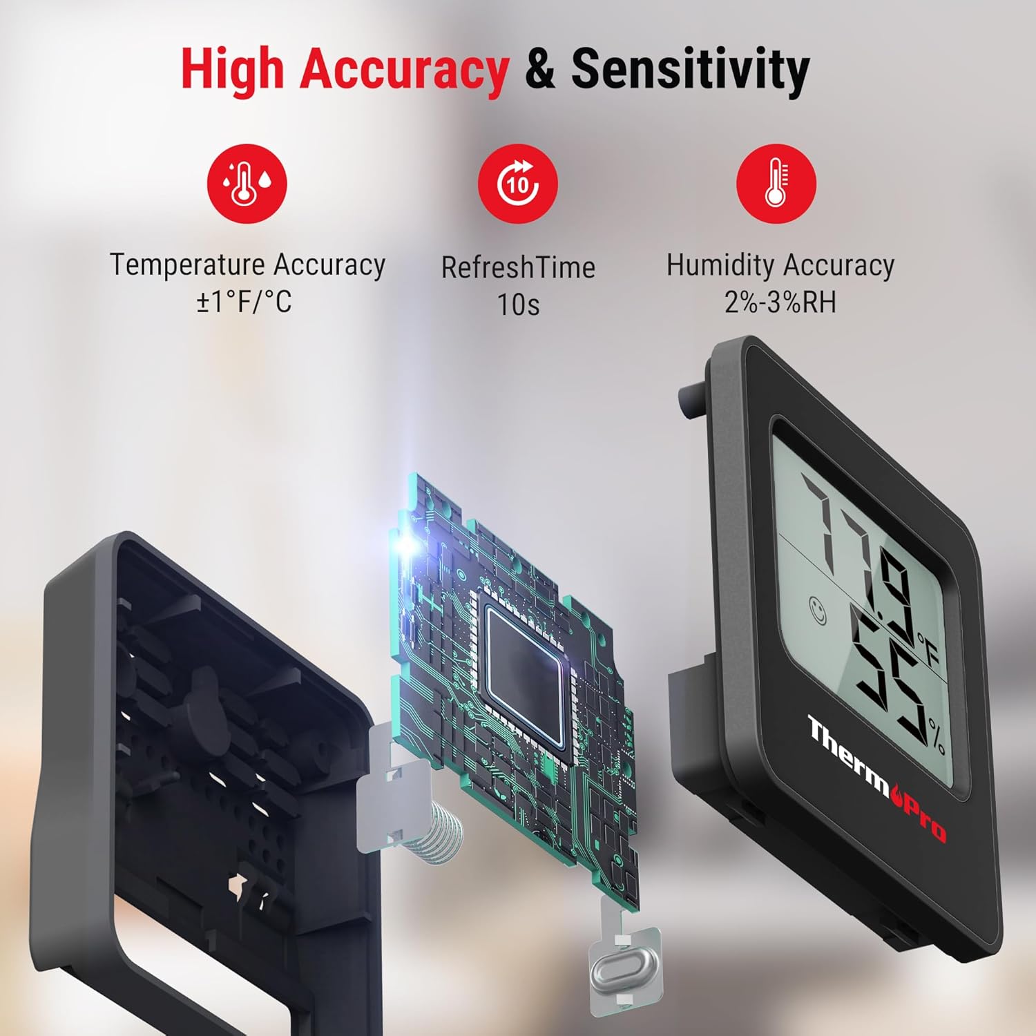 - High Accuracy & Fast Refresh Rate: Temperature humidity gauge is equipped with a high-performance humidity temperature sensor with an accuracy of up to +/-1°F and +/-2% to 3%RH, and a refresh rate up to 10s, allowing you to adjust humidistat in time