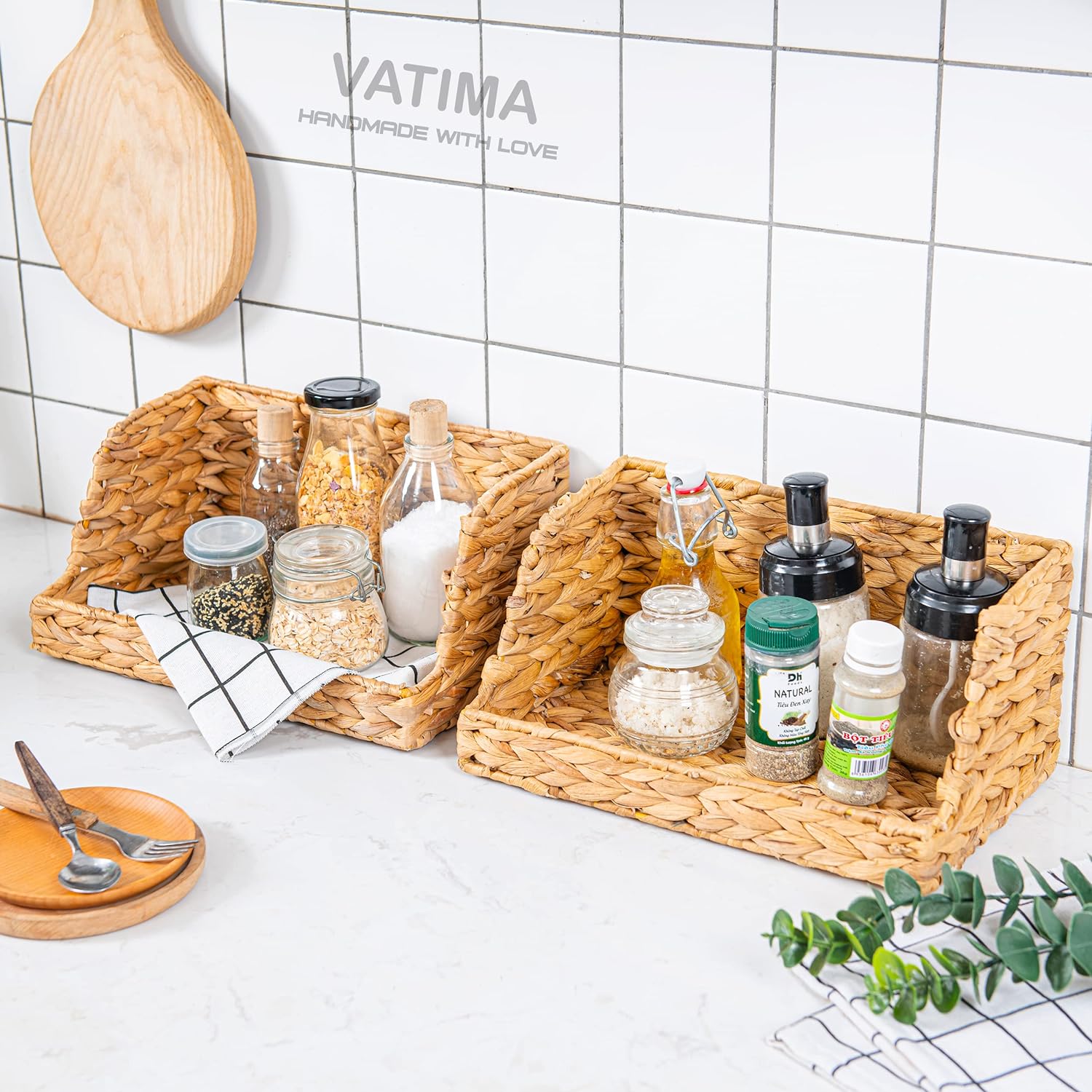 VATIMA Water Hyacinth Storage Baskets for Organizing, Medium Open-Front Wicker Basket for Kitchen, for Shelves, 11.8” x 7.5” x 5.5”, 2 Pack