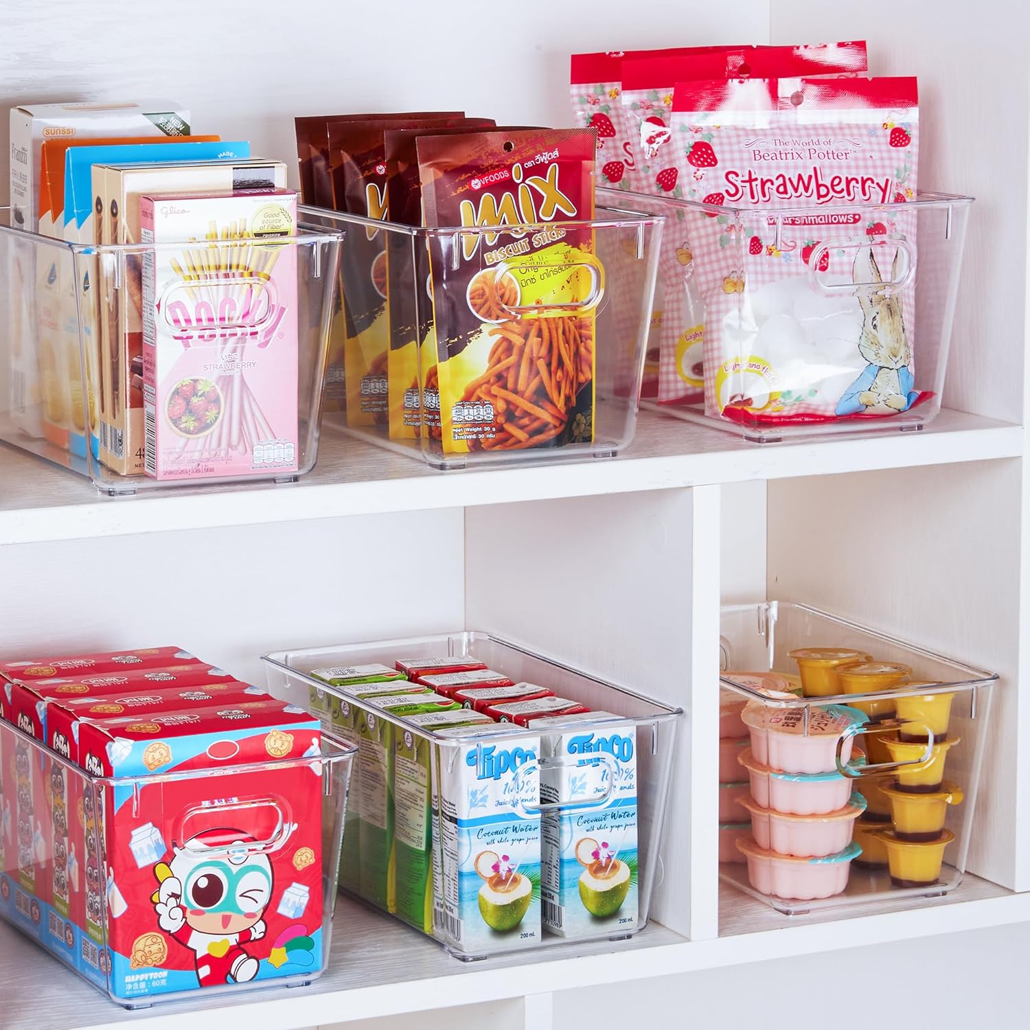 - Functional and Versatile ---- With the perfect size, these plastic storage bins are great for cabinets and deep pantry shelves as well as inside the fridge or freezer. You can use them in any room of the home, such as in kitchen, pantry, closet, craft rooms, laundry rooms, bedrooms, bathrooms, kitchens, offices, garages, toy room, playroom and more.