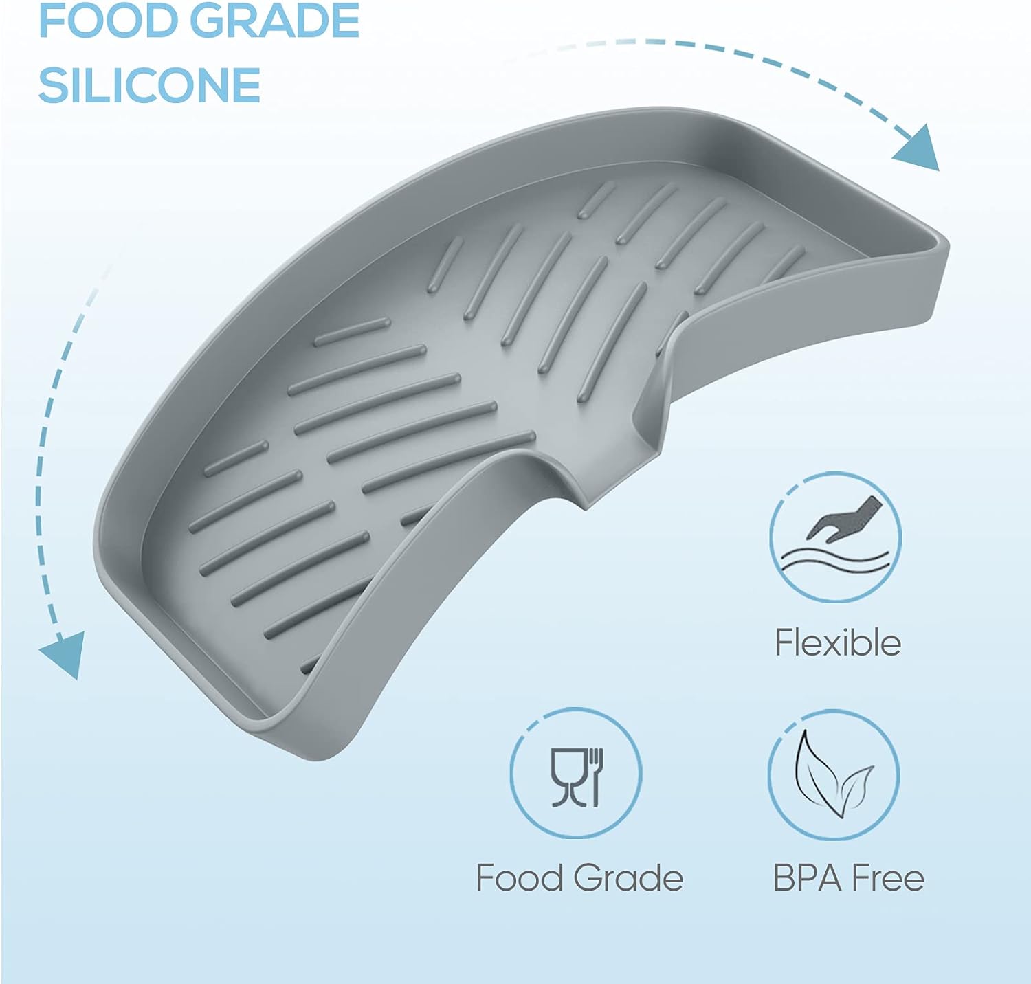- 【Superior Quality Food-Grade Silicone】 Our kitchen sink tray is made of superior quality food grade silicone which is BPA free, flexible and very durable, it won't crack, peel or become brittle.This silicone sponge holder is heat resistant for use with hot tools and it is easy to clean, you can put it into the dishwasher. More importantly, this silicone dish soap holder prevents slipping by offering a grip.