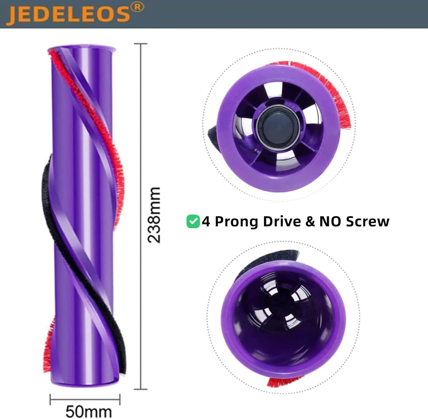 Replacement Brush Roller for Dyson V8 Cordless Vacuum Cleaner, Brush Bar Assembly Compared to Part 967485-01 (4 Prong Drives & No Screw)