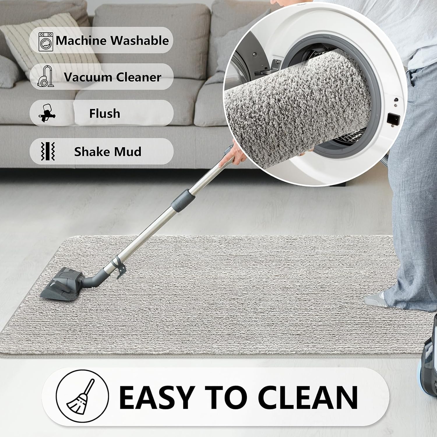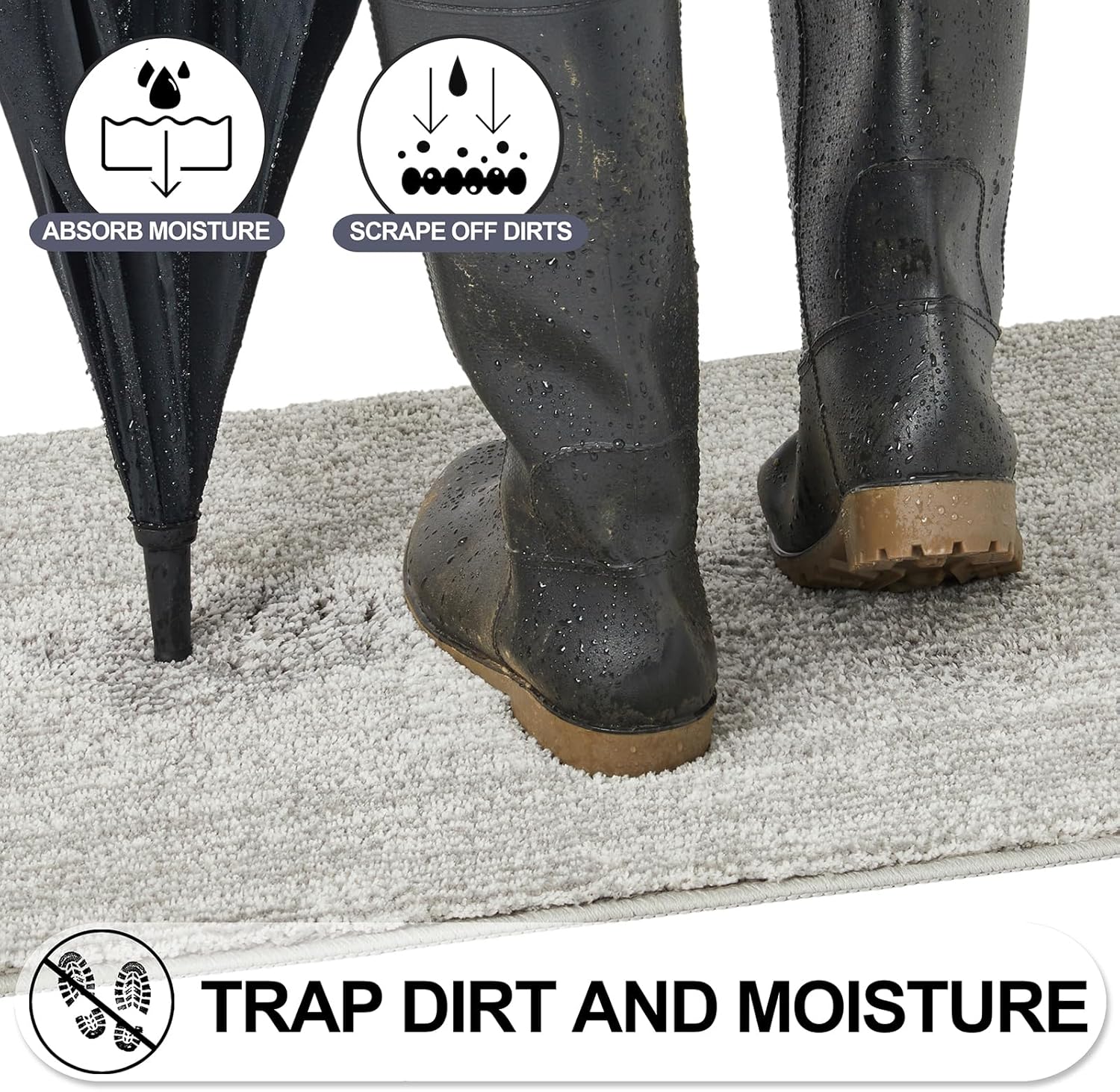 REFETONE Indoor Doormat, Front Door Mat 32"x40" Absorbent Rubber Backing Non Slip Back Door Mats, Washable Low-Profile Inside Floor Mat Door Rugs for Entryway, Resist Dirt Mud Mat for Dogs, Grey