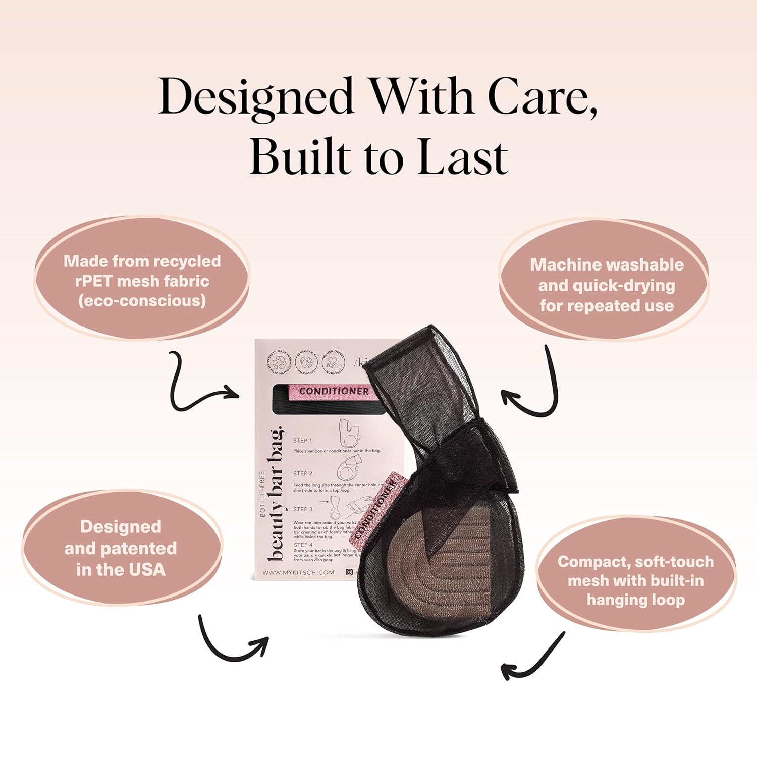 Kitsch Bar Soap Saver Bag – Patented Mesh Bag Soap Holder for Shampoo and Conditioner Bars - Extends Use & Prevents Soggy Mess - Recycled Mesh Beauty Pouch, Eco-Friendly – Black