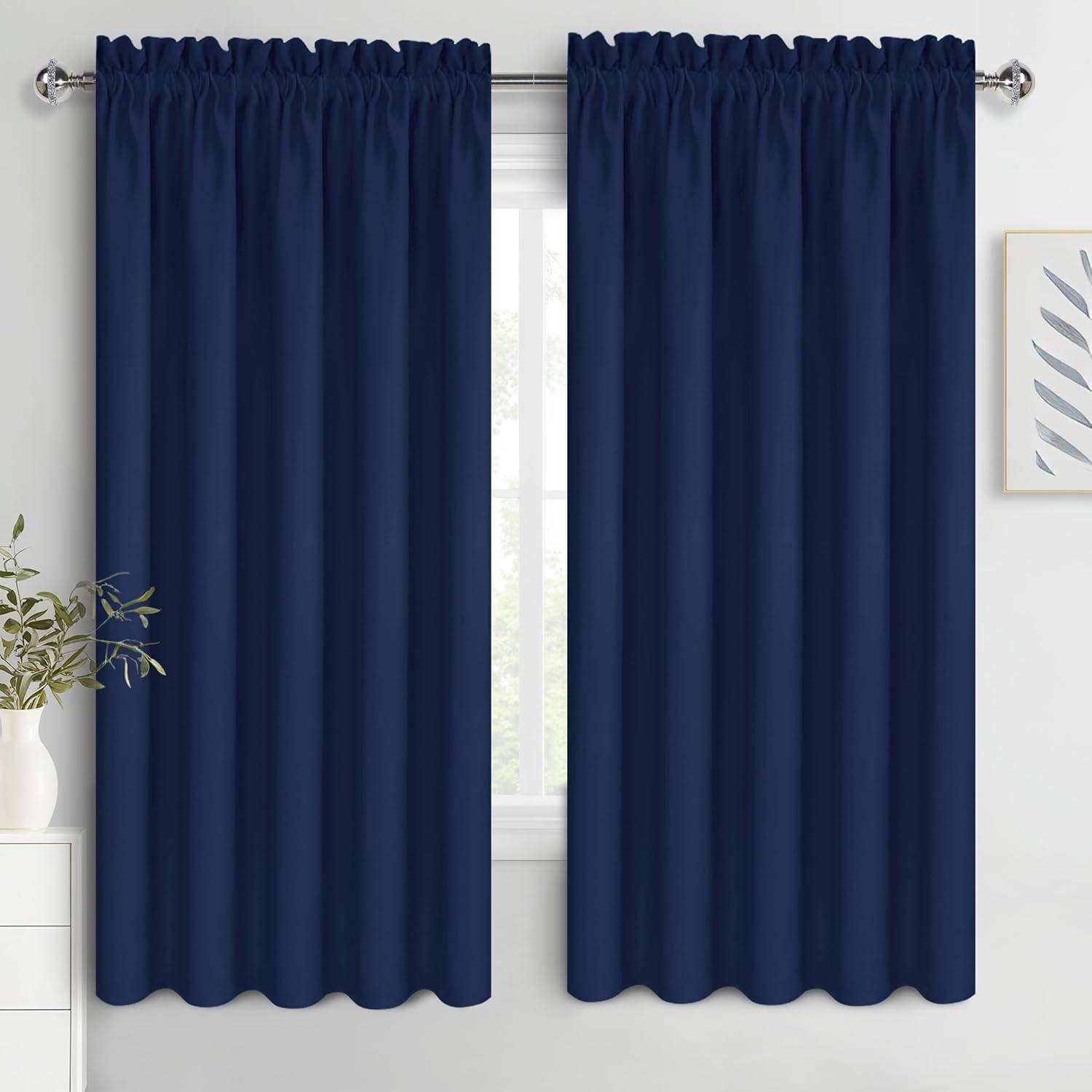 DWCN Bedroom Blackout Curtains 60 x 63 Inches Length 2 Panels Set, Solid Thermal Insulated Energy Saving Window Treatment Drapes, Rod Pocket Curtains for Kids Boys Room (W60 x L63 Inch, Navy Blue)