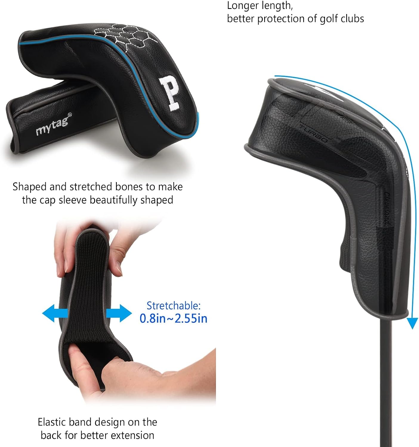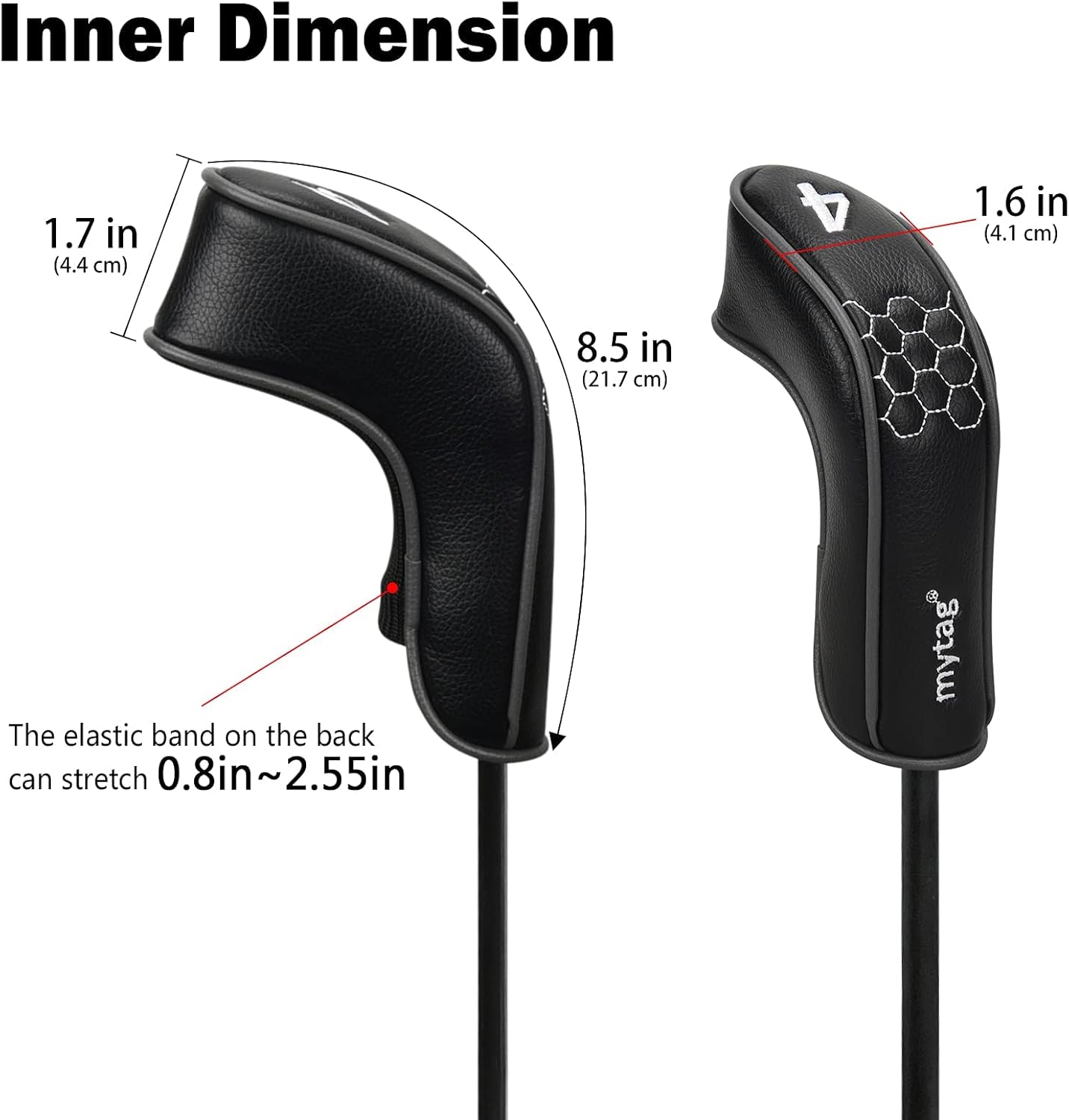 mytag 8PCS Golf Hybrid Iron Covers Set, Knit Hybrid Head Covers, Fits Cobra T Rail, Cleveland Launcher, Wilson Launch Pad, Tour Edge Hot Launch - Customizable