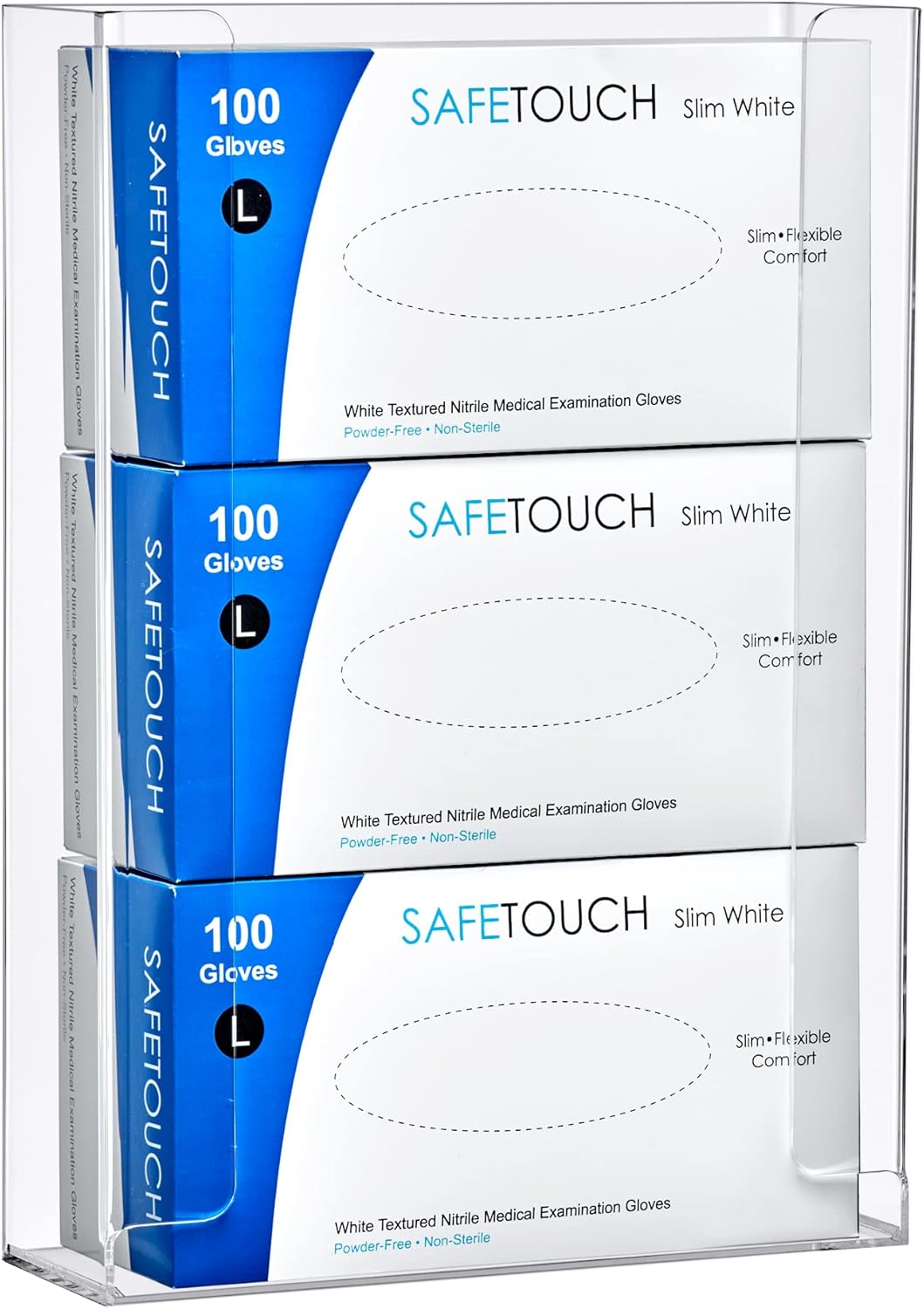 Amazing Abby Acrylic Glove Box Holder, Wall-Mounted Glove Dispenser, Floating Glove Box Organizer, Large Size (for 3 Boxes), 10.5" W x 15.0" H x 3.5" D (Mounting Hardware Included)