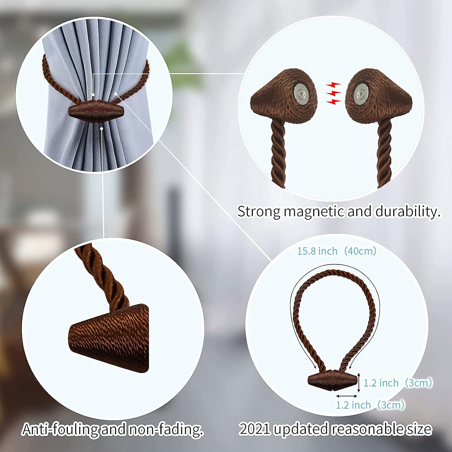 Hion Magnetic Curtain Tiebacks Dark Brown 2pcs, Curtain Tiebacks Buckles Holdbacks Holders Hooks Clip for Home Bedroom Office Decorative Curtain