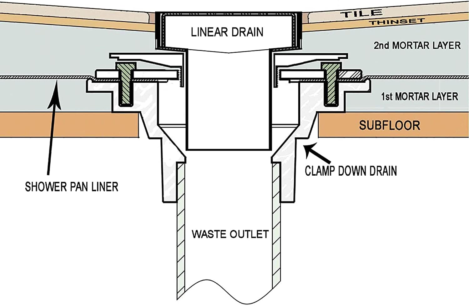 - ①【Square Design】:Our Square Gold Shower Drain 5.9 Inch Length, 5.9 Inch Width,2 inch High Flow Outlet.20-25 L/min high flow capability(NON-SCREW INTO DRAIN RISER TYPE). Fits US NO HUB Drain Base System. 2" PVC No-hub Shower Drain Base included
