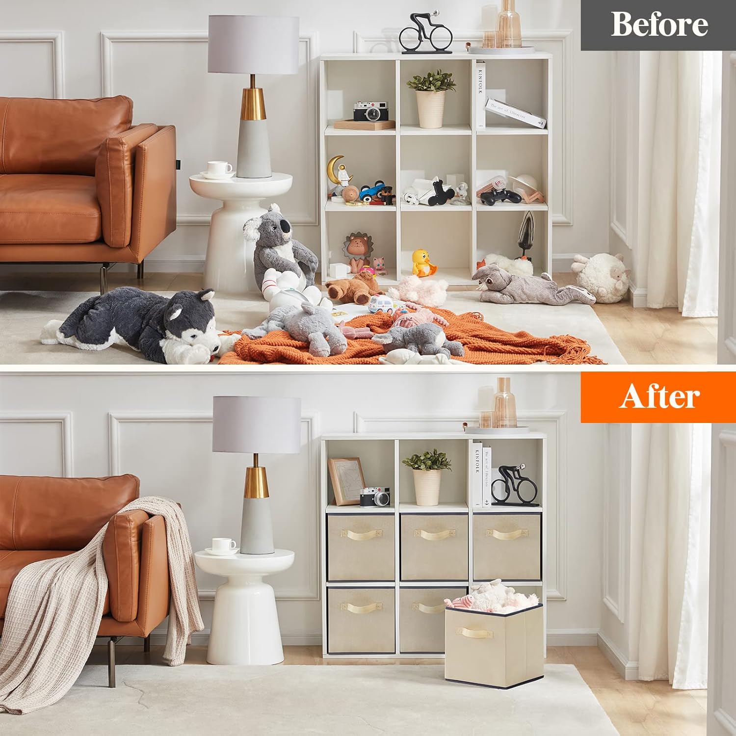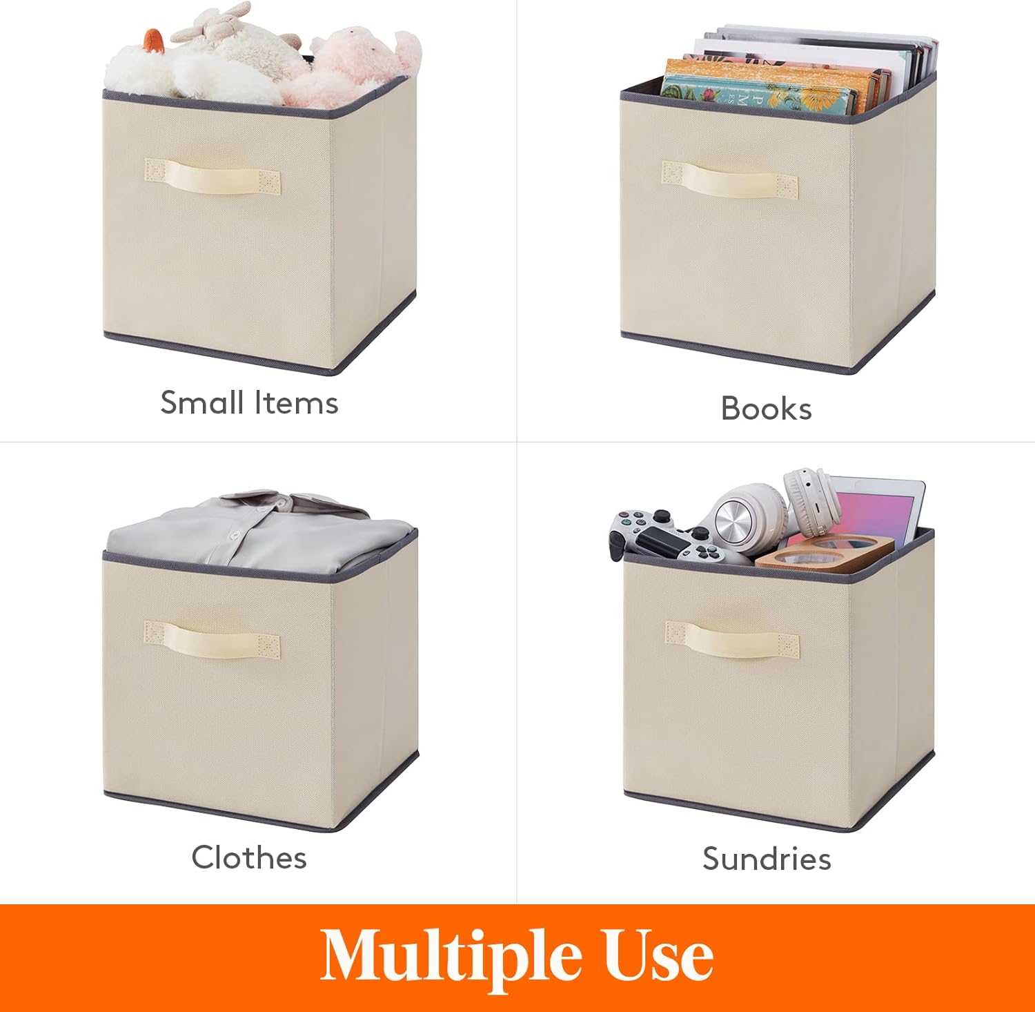 Lifewit Collapsible Fabric Storage Cubes Bins Set 11 Inch, Foldable Cubby Organizers Boxes, 6 Pack Organizing Baskets for Shelf, Closet, Utility Room, Storage Room, 18L Beige