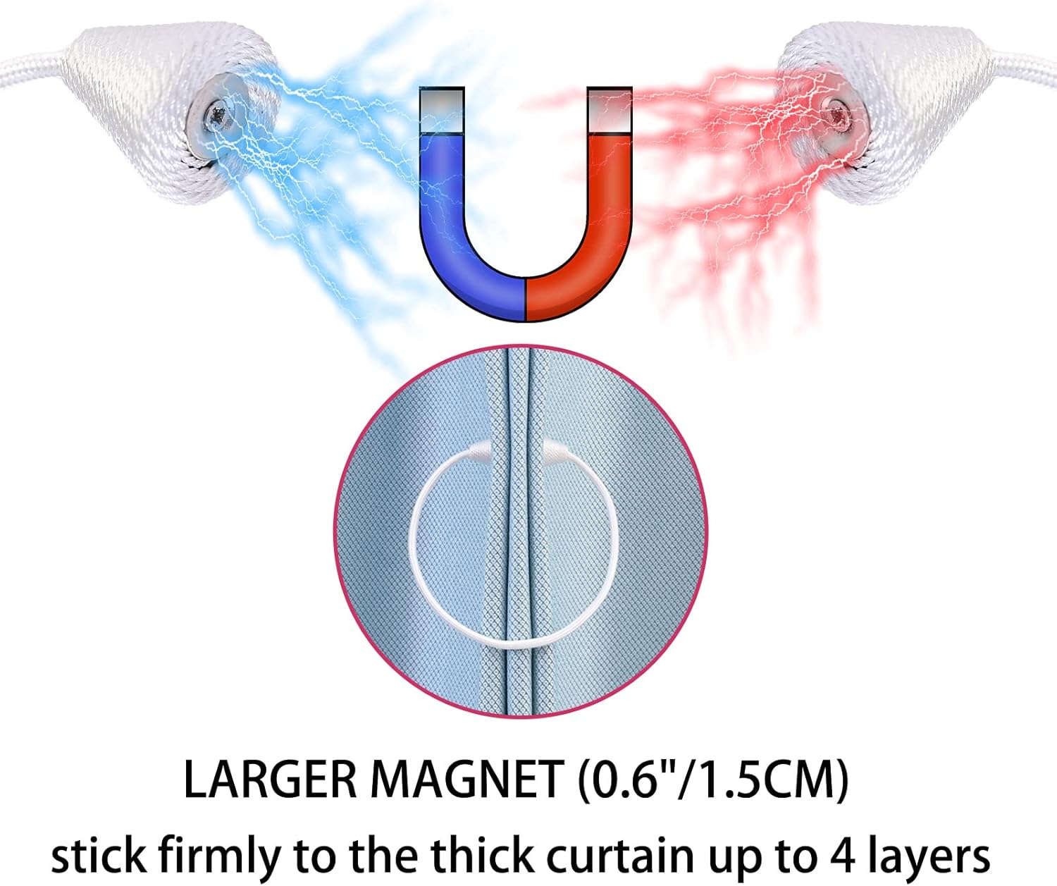 - WIDE APPLICATION: The length and binding method can be adjusted freely according to the thickness of the curtain. It is widely used in curtains in different places such as bedroom, living room, dining room, bathroom, kitchen, office, courtyard and so on. Different colors of magnetic drape tiebacks adorn your curtains, which can change different styles, giving the curtains a unique charm