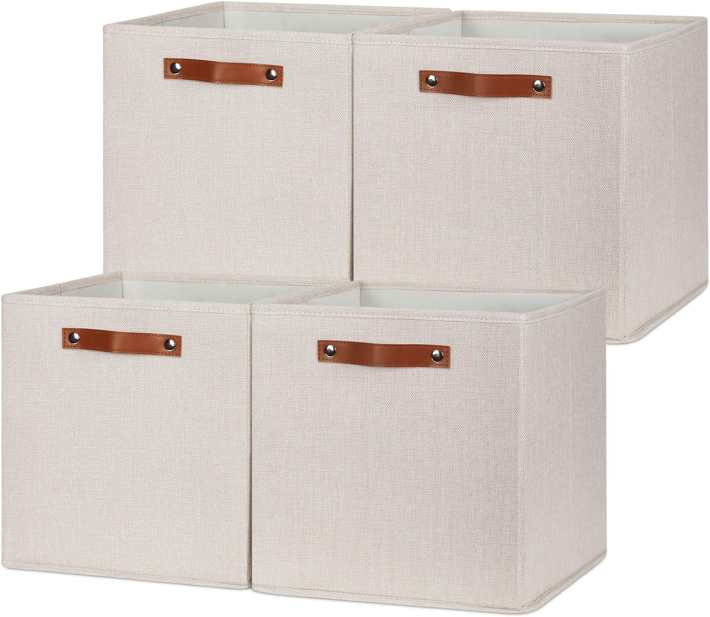 HNZIGE Large Storage Baskets Set of 4 Collapsible Storage Baskets,13x13 Storage Cube Bins with Handles,Foldable Storage Cube Bins for Shelves(cream)