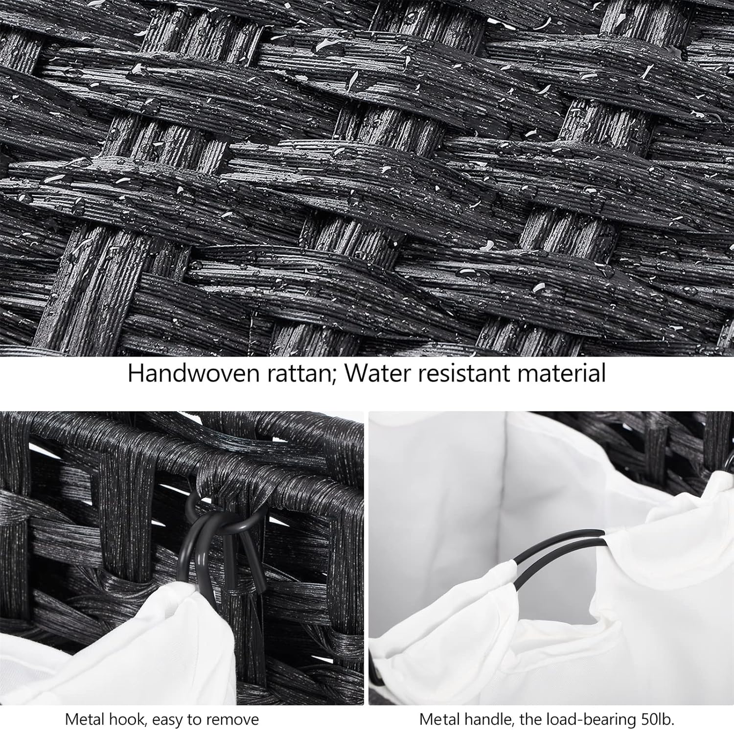 Laundry Hamper with 3 Removable Liner Bags; 132L Handwoven Rattan Laundry Basket with Lid & Heightened Feet; Clothes Hamper with Side Handles; Laundry Sorter with 3 Separate Sections (Black)