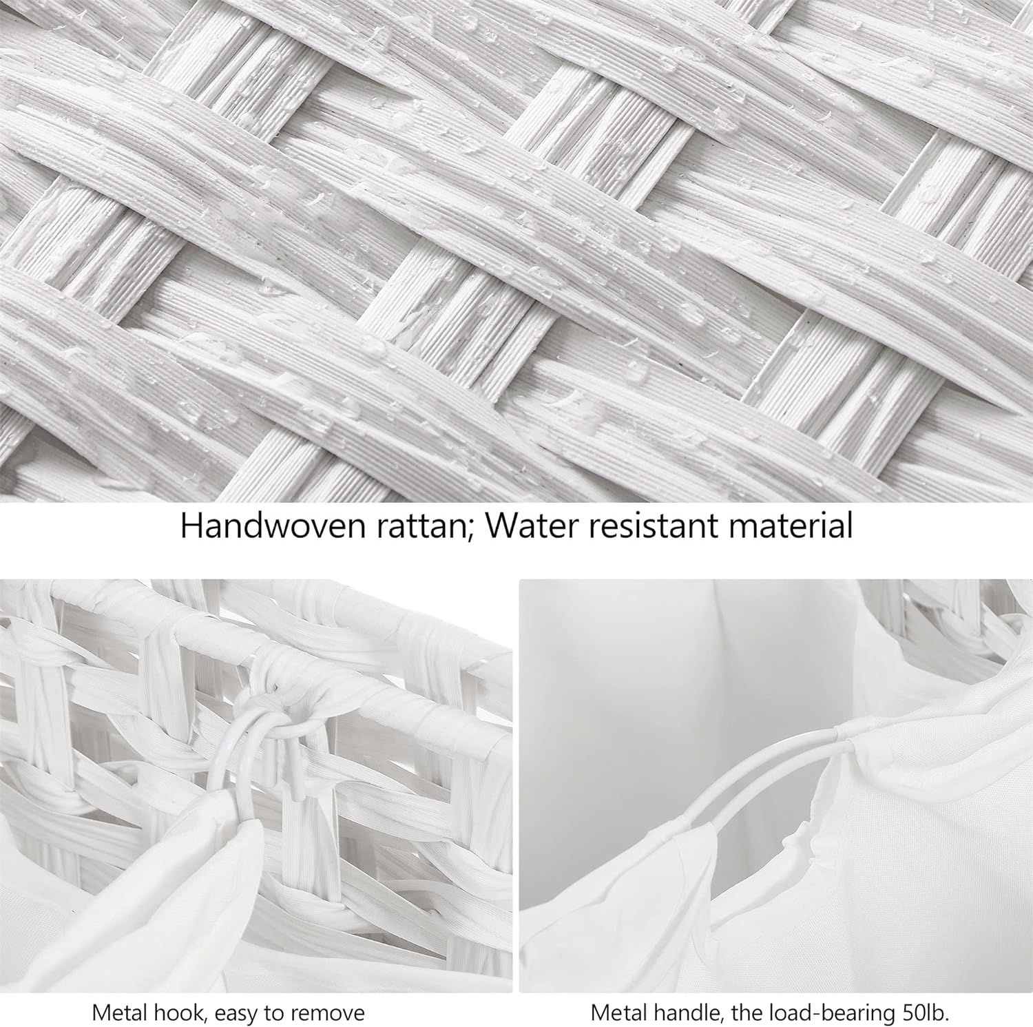 Laundry Hamper with 3 Removable Liner Bags; 132L Handwoven Rattan Laundry Basket with Lid & Heightened Feet; Clothes Hamper with Side Handles; Laundry Sorter with 3 Separate Sections (White)