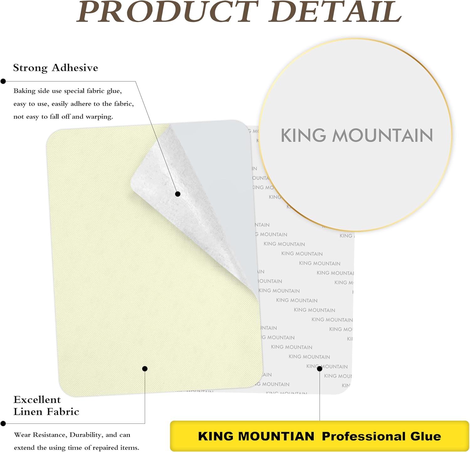 KING MOUNTAIN Fine Linen Repair Patches, Self-Adhesive Linen Fabric Patches, 8X11 inch Extra Size, Multi Color, Can be Used for Linen Sofa Repair and Linen Clothes Repair(8" x 11",Beige 2.0)