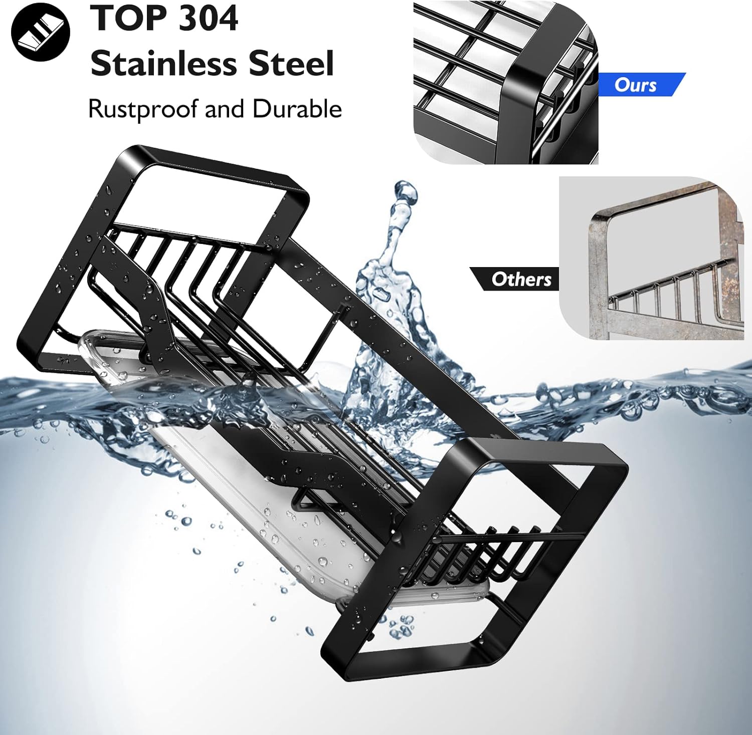 - ăRustproof & Durable MaterialăThis sink sponge holder frame is made of 304 stainless steel, which is waterproof, rust-proof, fingerprint-proof and durable. Better surface gloss brings better appearance.Four non-slip rubber pads are installed at the bottom to protect your desktop from scratches