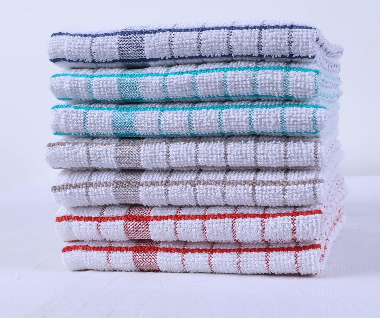 - SET OF 8 DISHCLOTHS: This set includes 8 premium-quality, 12" x 12" dish cloths, crafted from , high-density terry cotton. Ideal for everyday kitchen use, each cloth provides an excellent balance of softness and absorbency, ensuring a luxurious feel and optimal cleaning performance.