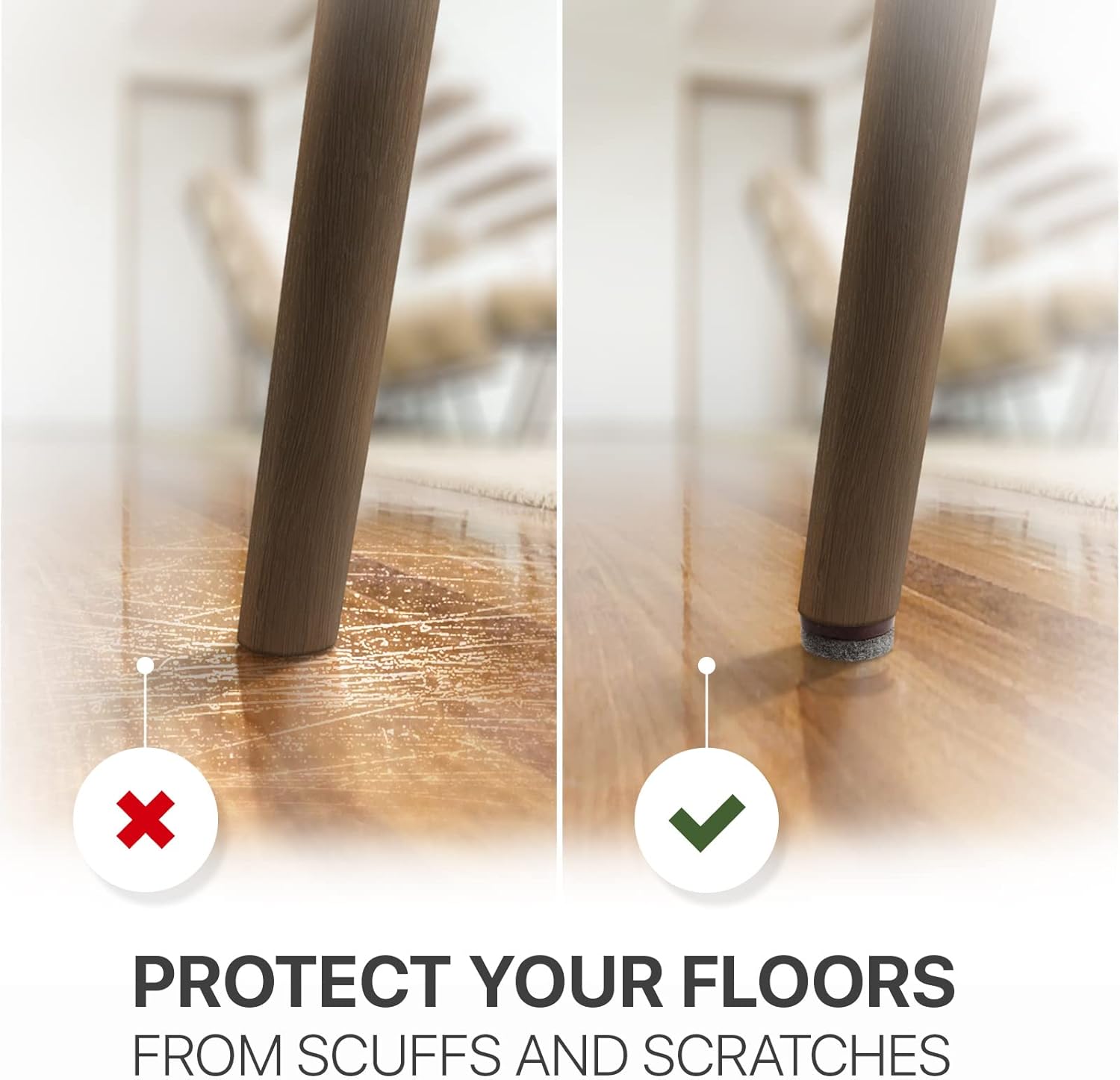 - π DOES YOUR CHAIR SCRATCH THE FLOOR? DO YOU WANT TO GET RID OF THE ANNOYING NOISE FROM SLIDING FURNITURE? THE SOLUTION IS FOUND! X-PROTECTOR FELT FURNITURE PADS WILL SOLVE THESE ISSUES FOR YOU!