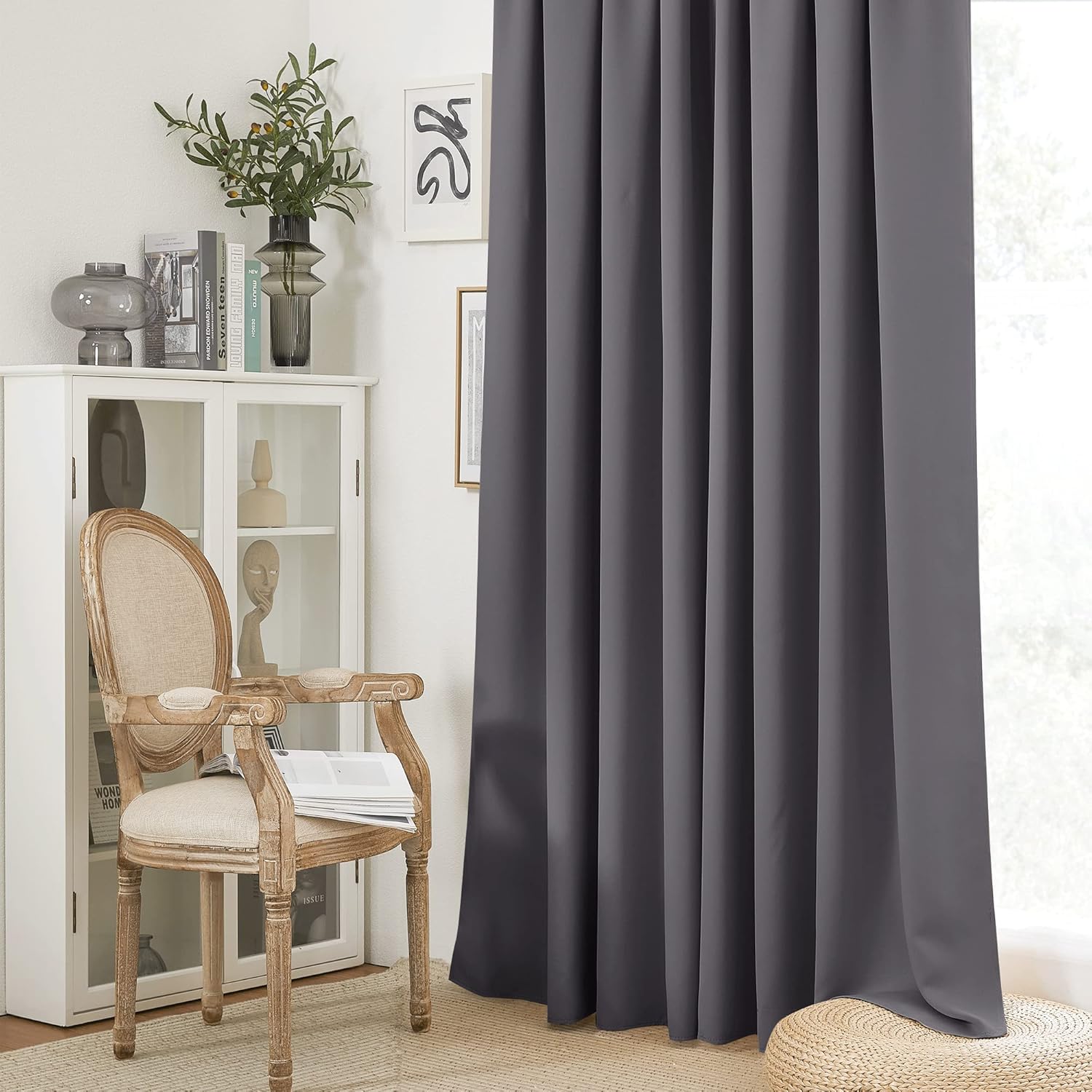 RYB HOME Grey Curtains Extra Long, Thermal Insulated Curtain Panels for Kitchen, Rod Pocket Room Darkening Privacy Large Window Drapes for Sliding Door, Grey, W52 x L120 inches, 2 Panels Set