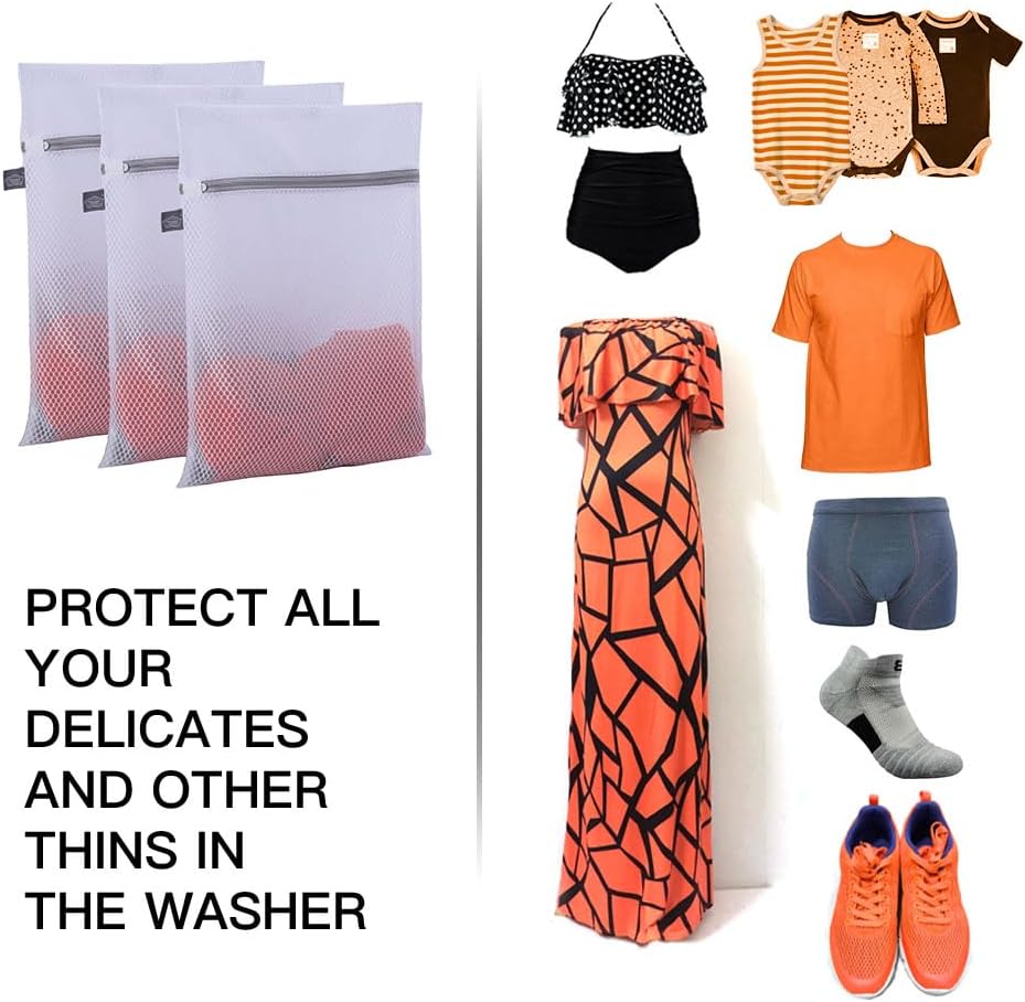 - 【Come in 3 Pieces】10 x 12 inch, perfect for washing underwear, socks, hosiery, tights, baby clothes, silk blouese, lace garments, chiffon shirts, face towels, swimsuits, gloves and scarves