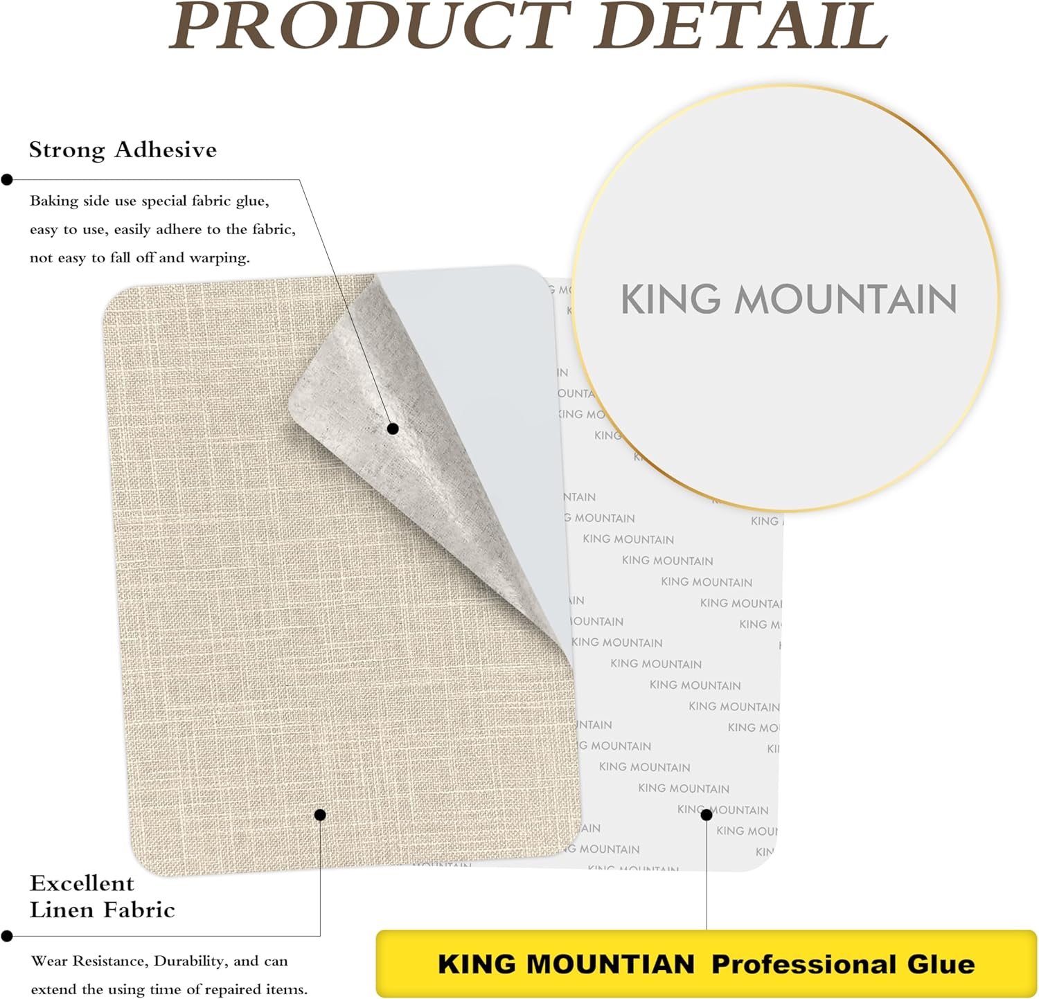 KING MOUNTAIN Fine Linen Fabric Patches, Self-Adhesive, 8x11 inch Extra Size, Multi Color, For Linen Sofa and Clothes Repair