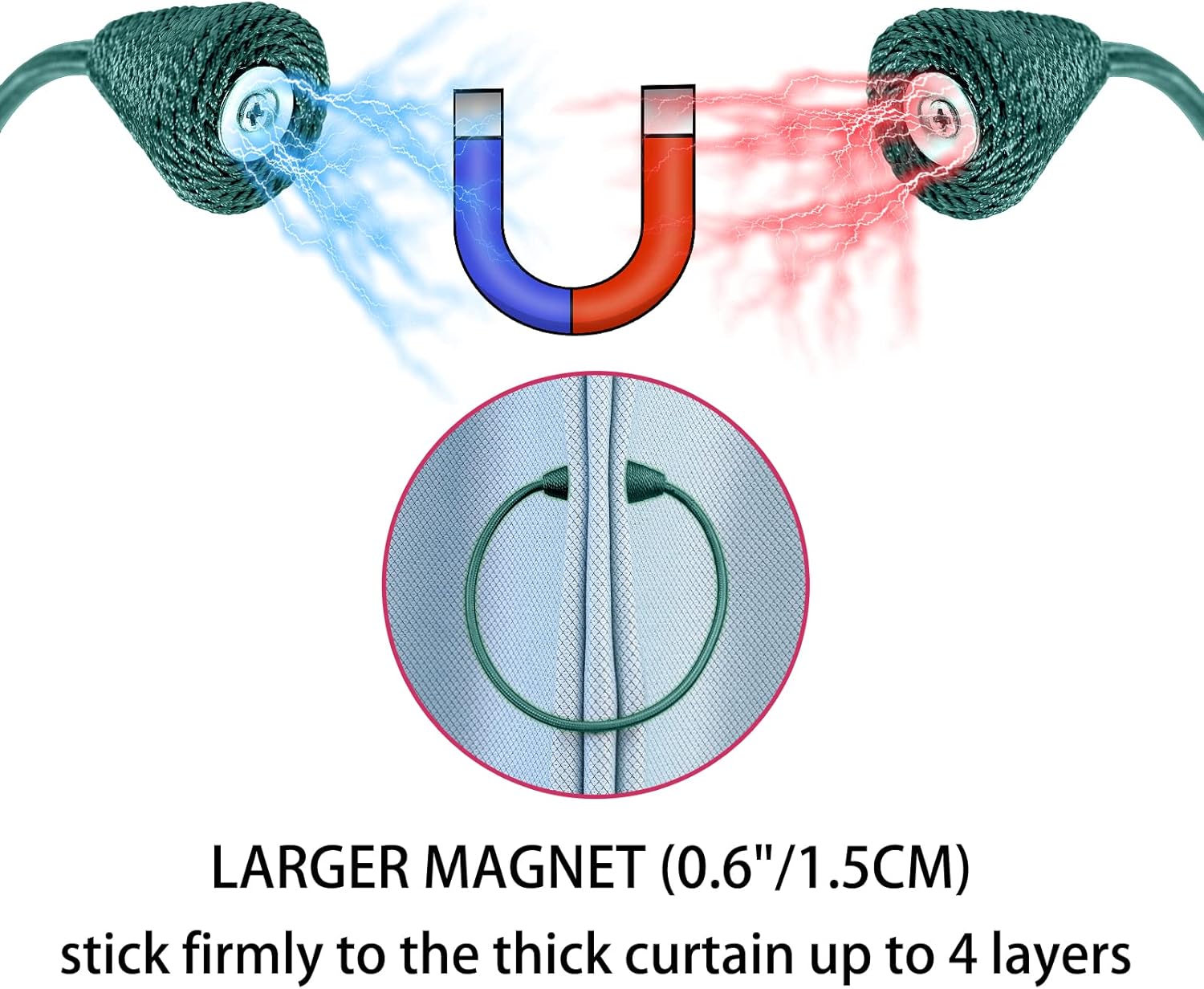 - WIDE APPLICATION: The length and binding method can be adjusted freely according to the thickness of the curtain. It is widely used in curtains in different places such as bedroom, living room, dining room, bathroom, kitchen, office, courtyard and so on. Different colors of magnetic drape tiebacks adorn your curtains, which can change different styles, giving the curtains a unique charm