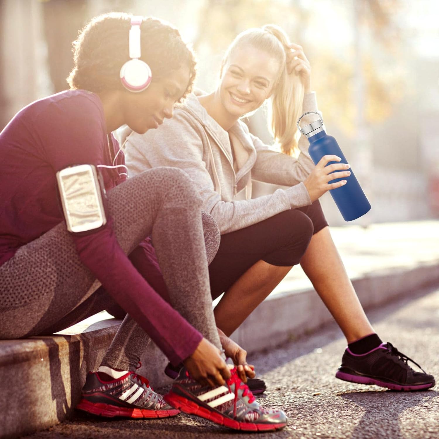 Neihepal 20 oz Insulated Water Bottles Bulk 2 Pack,Stainless Steel Double Wall Sport Bottle with Lid of Handle,Metal Reusable Thermoses Flask with Cup Cap for School,Cyclists,Gift (Navy,Set of 2)