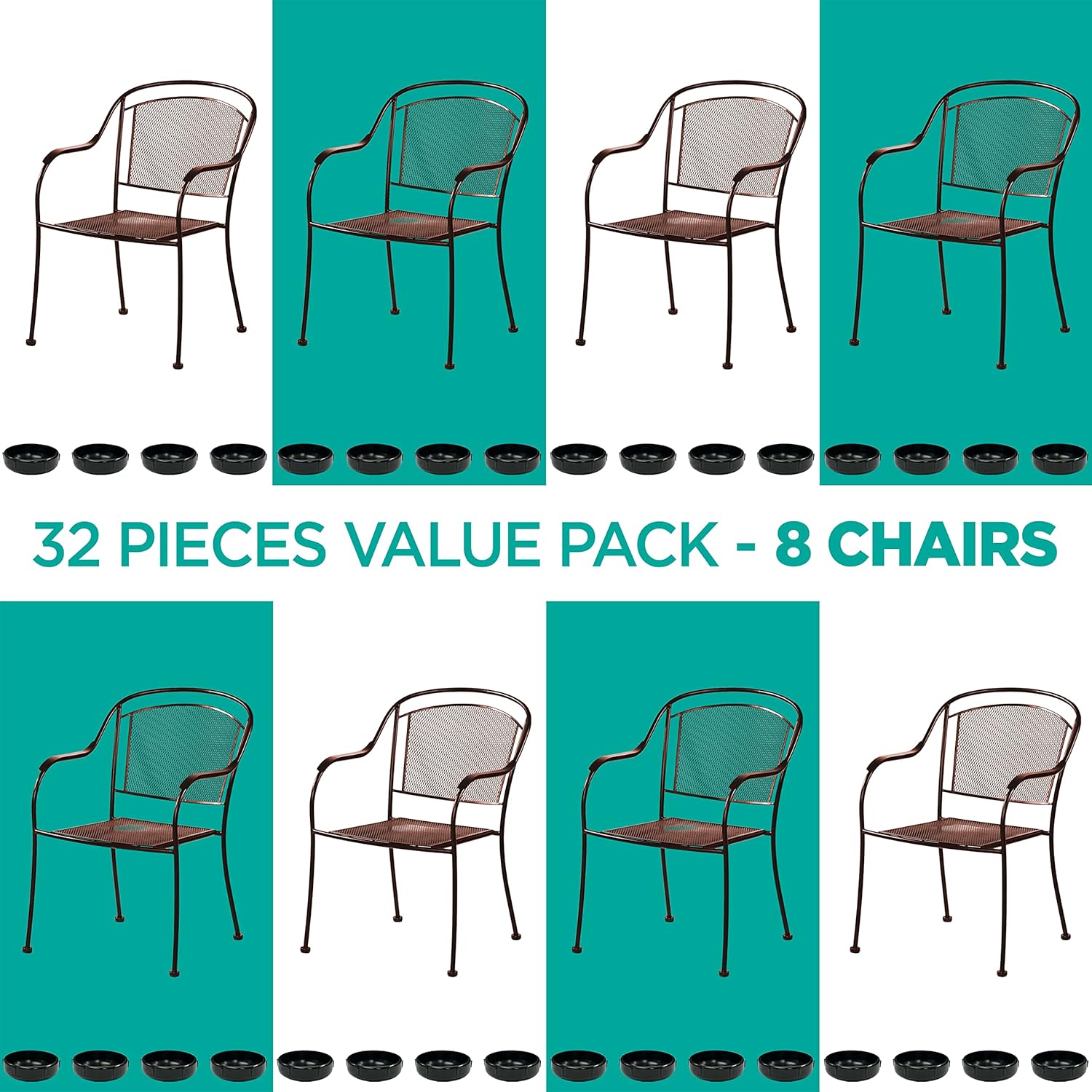 - More Value For Your Money - These high-quality chair feet covers are available in two sets. Get our set of 24 white gliders for furniture legs for 6 chairs or choose our pack of 32 black caps for 8 chairs.