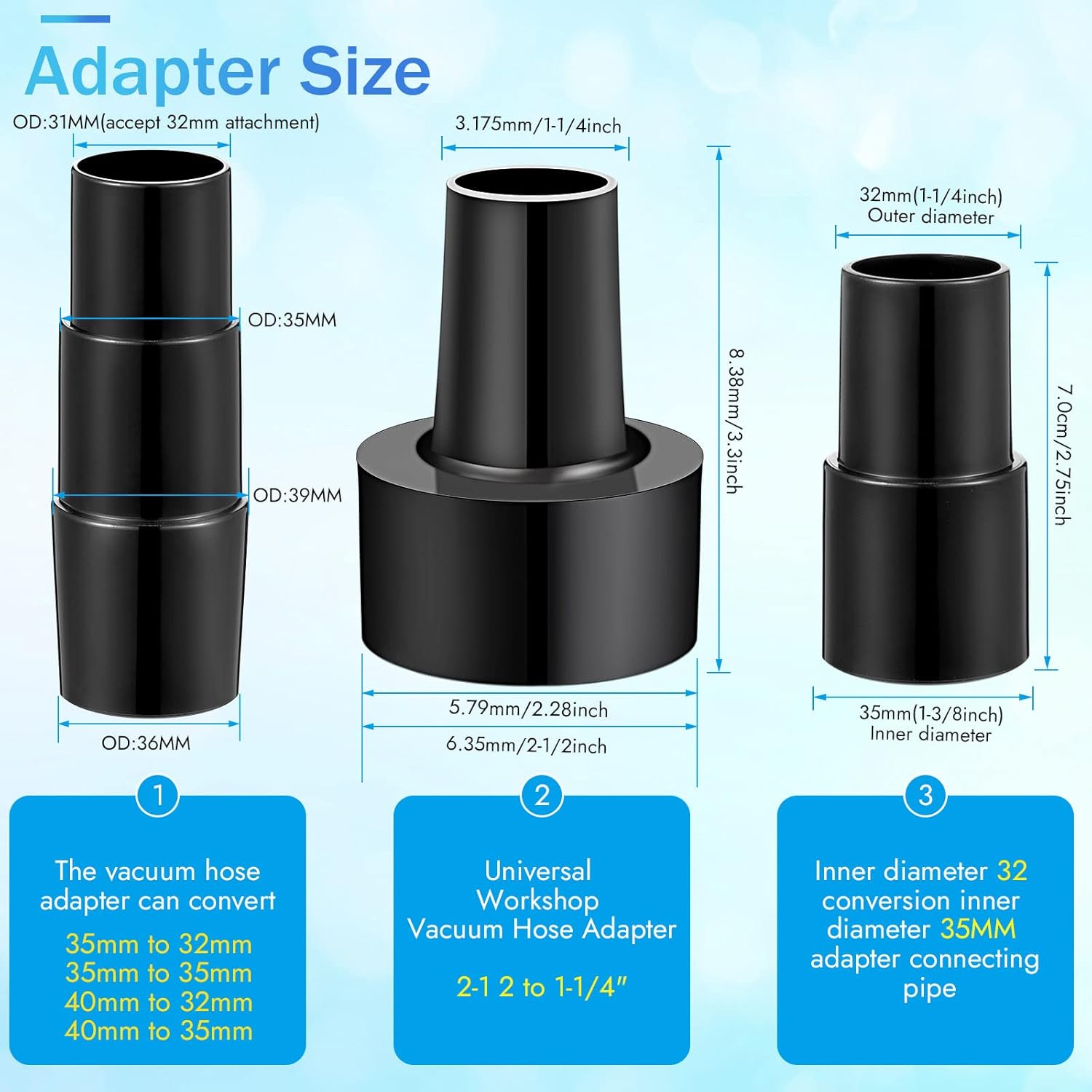 - Replaceable vacuum cleaner adapter: You will receive 3 types of cleaning brush heads and 3 pieces of brush head converters. The soft bristles of the cleaning vacuum cleaner fixed brush can be replaced with 1-1/4 inch to 1-3/8 inch, allowing this accessory to be compatible with large Most household vacuum cleaners are applied together. Please check our brush size drawing and installation drawing before buying