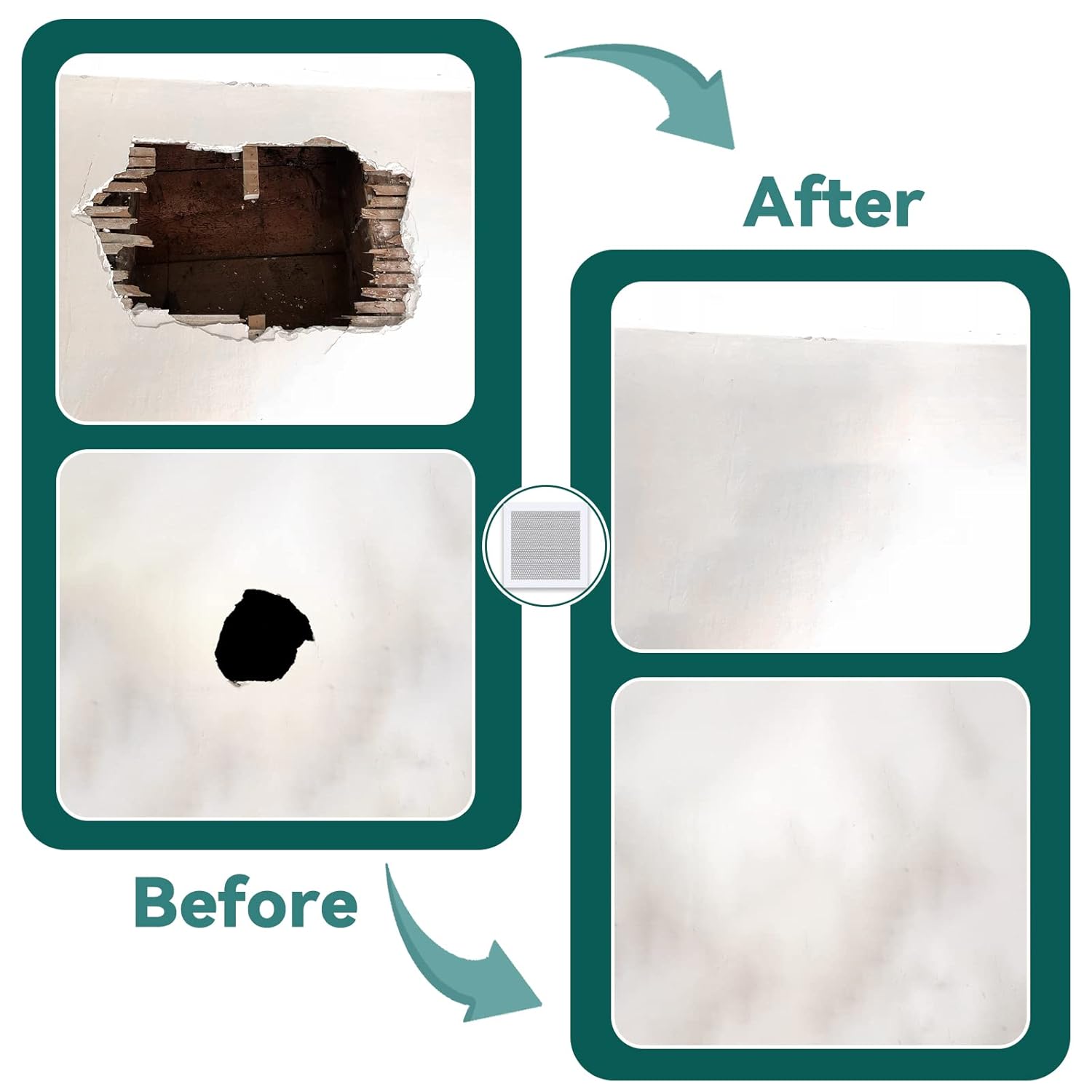 - Easy to Use - This drywall patch will be your hands-on solution to repair holes or cracks in an easy-to-use way in less than 5 minutes. Use sandpaper to sand the broken surface, and then, tear off the protective film of the mesh wall repair patch, turn the metal side towards the broken surface or hole, apply Sugelary spackle on, and smooth it. Convenient and fast to repair damaged areas on walls and ceilings