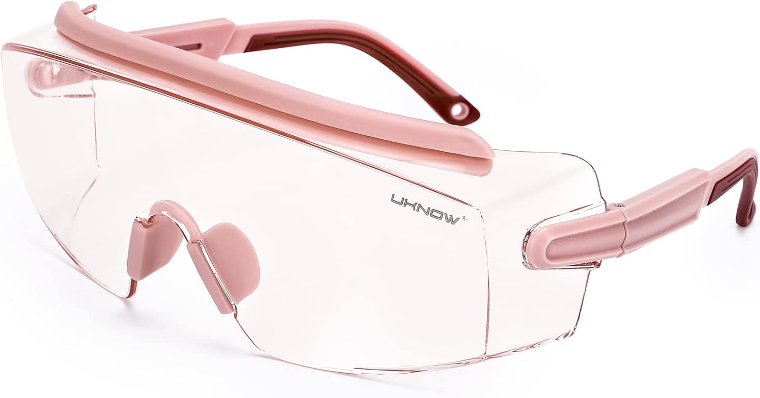 UKNOW Safety Goggles Over Glasses, Safety Glasses Anti Fog Wraparound Eye Protection, Protective Eyewear ANSI Z87.1