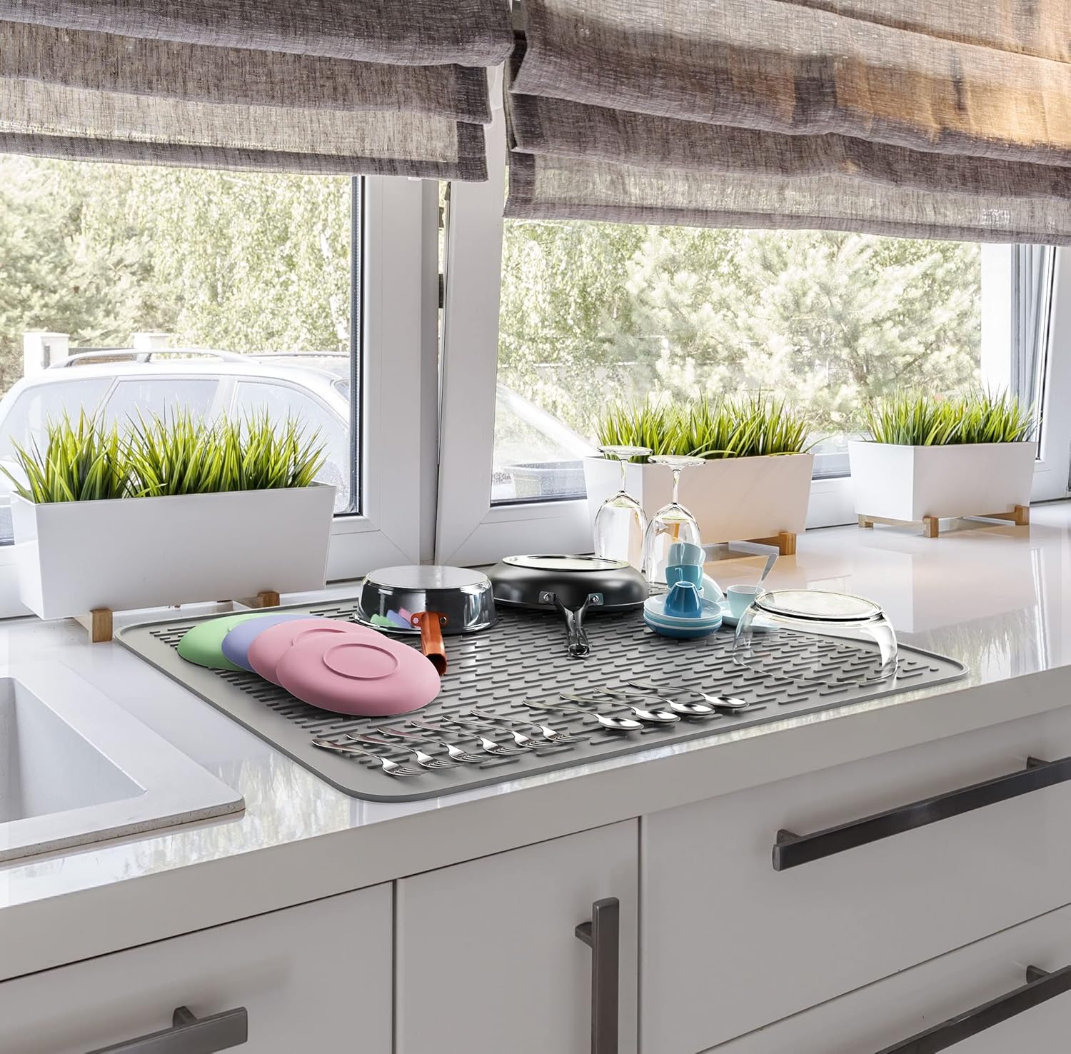 - Quick-Drying Technology: Extra Large drying mat silicone material helps reduce moisture buildup and dries your dishes quicker, keeping your kitchen counters neat and dry.