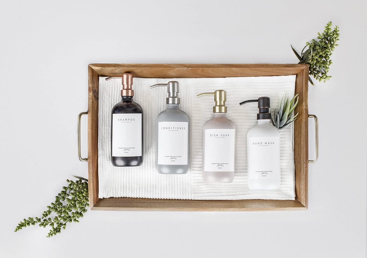 - ✅ KITCHEN OR BATHROOM USE: While other dispensers peel over time, our dispensers are made of premium quality and last far longer. The bathroom soap dispensers and kitchen soap dispenser set are 16 ounces and are refillable, requiring fewer refills. Ideal for using as a bathroom soap dispenser set and the glass soap dispenser with pumps boast 2 cc stainless steel pumps.