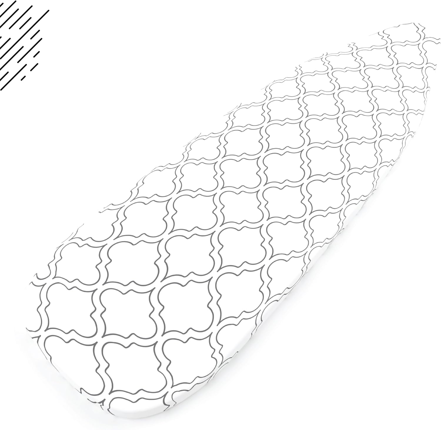 Encasa XO Ironing Board Cover and Pad 49"x18" - Thick 3mm Felt Padding, Drawstring Tightening & Lock, Easy Fit, Scorch & Stain Resistant, Fits Wide Ironing Board - White Tiles