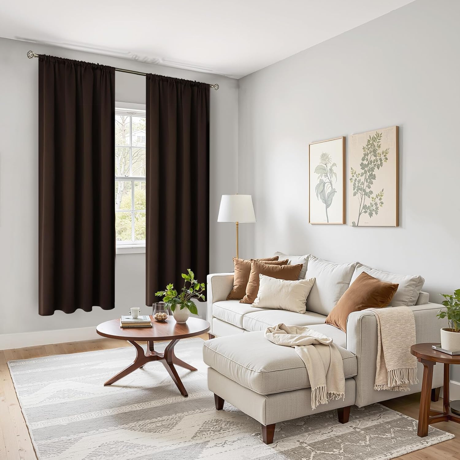 - Package Includes: Set of 2 brown blackout curtains; each panel measures 42 Inch wide by 72 Inch long.