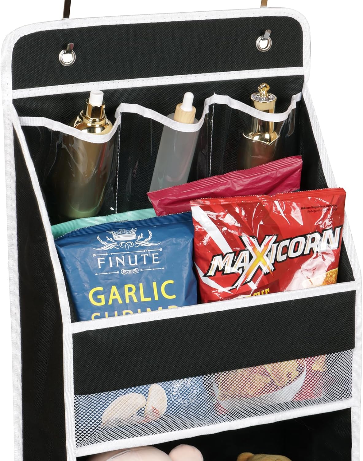 Univivi 5-Shelf Fabric Door Storage Over Door Hanging Organizer with 4 Large Pockets and 3 Small PVC Pockets Nursery Closet Cabinet Wall Mount Hanging Storage Organizers for Baby Nursery (Black)